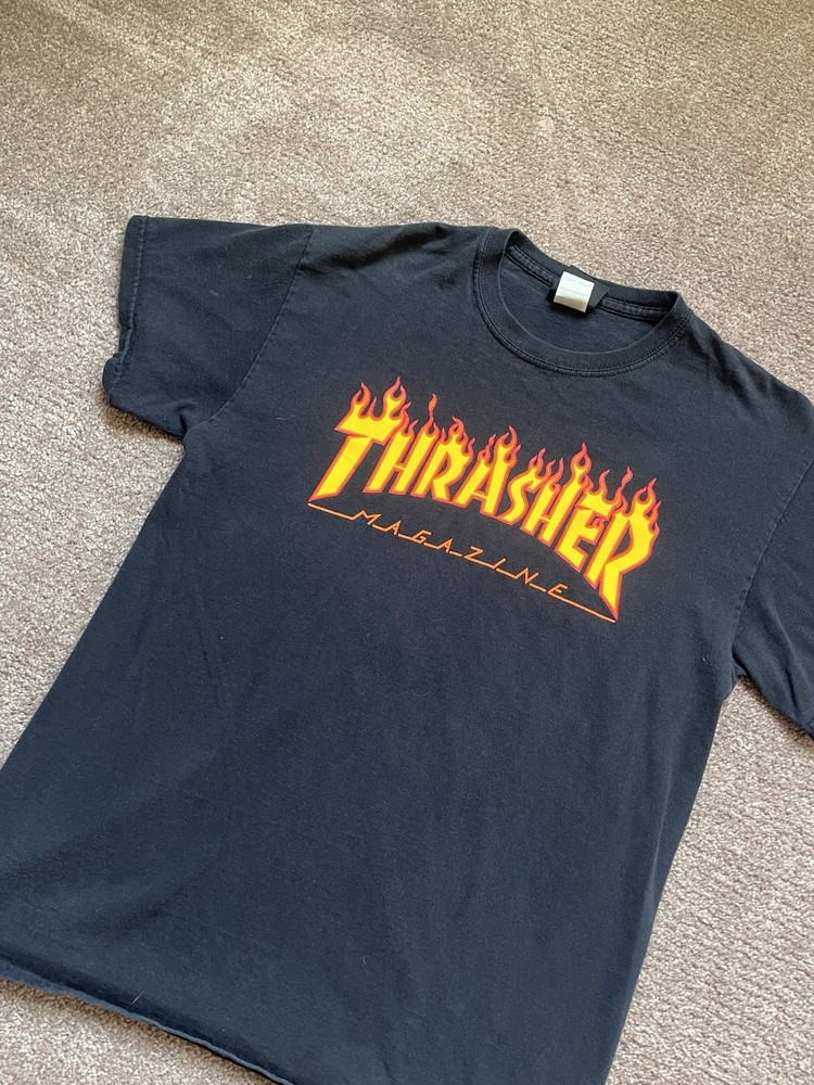 Nice Vintage 00’s Thrasher Magazine Faded Black Flaming Logo Tee, nice color and comfortable feel. -Size Mens Medium -Condition 9/10