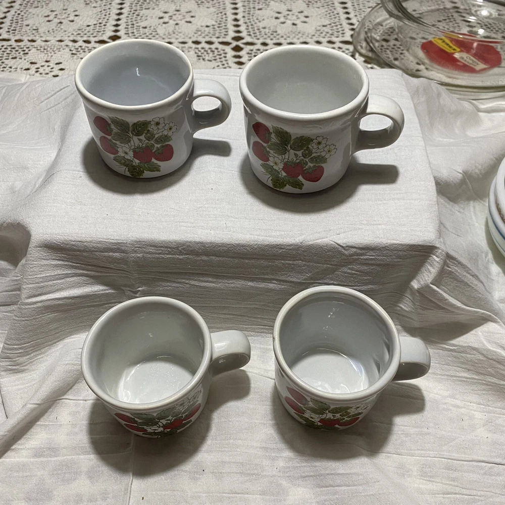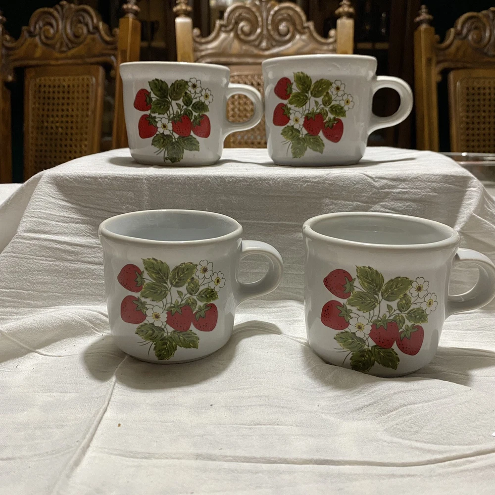 Darling strawberry set. Really nice condition. See photos Selling as is, as found. Condition is as shown in photos. You are purchasing the item that is in the pictures. The pictures are part of the description. If you have questions please contact me before bidding and before you have won the auction. I am more than willing to help answer any questions or send more pictures prior to the auction ending. Only item in title and description is included in sale. Nothing in background included. Colors shown can very from computer to computer Thank you! π