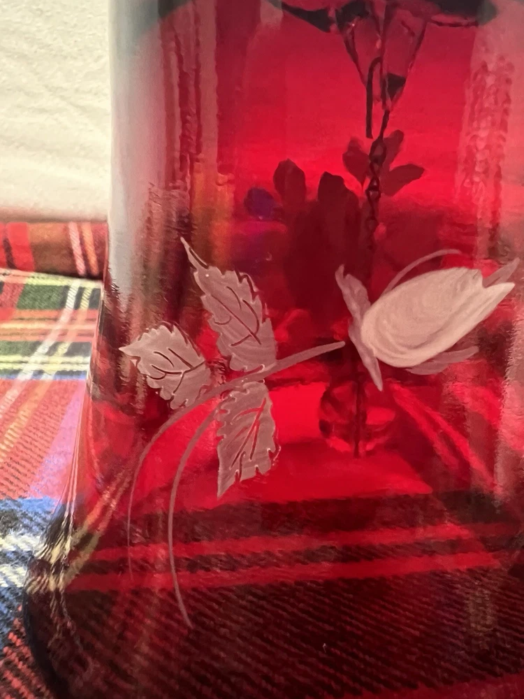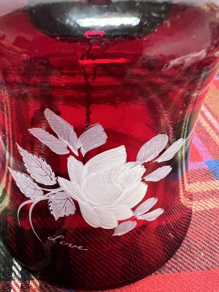 Lovely, vintage Fenton ruby red love bell with white roses. This bell stands 7 1/4” tall it’s signed in the inside of the bell. Would make for a very special present or an add onto your bell collection. There’s no chips or cracks. Thank you for your time and looking. I look forward into doing business with you. I do combine shipping. Thank you and happy bidding