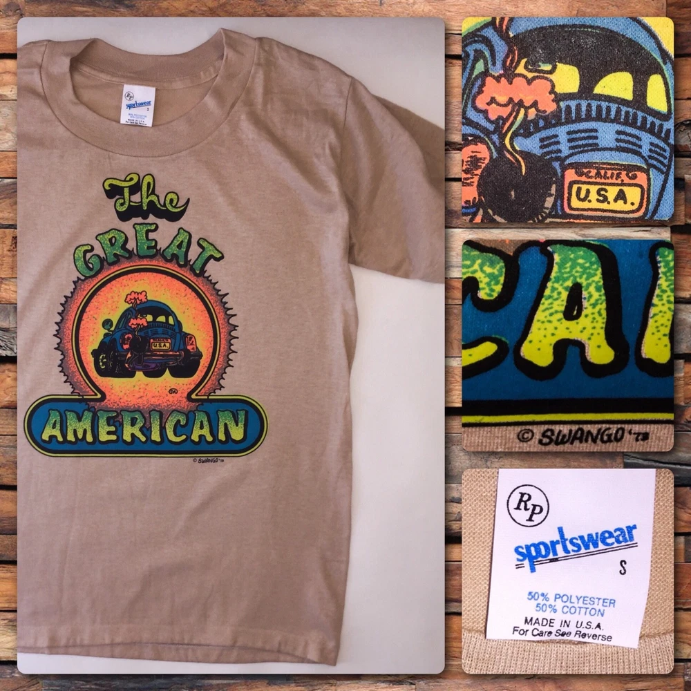 Country/Region of Manufacture: United States Style: Graphic Tee Color: Beige Material: Cotton Blend Sleeve Length: Short Sleeve Decade: 1970s Size (Men's): S Original/Reproduction: Original Seller Notes: “NOS unused shirt.” Size Type: Regular Modified Item: No