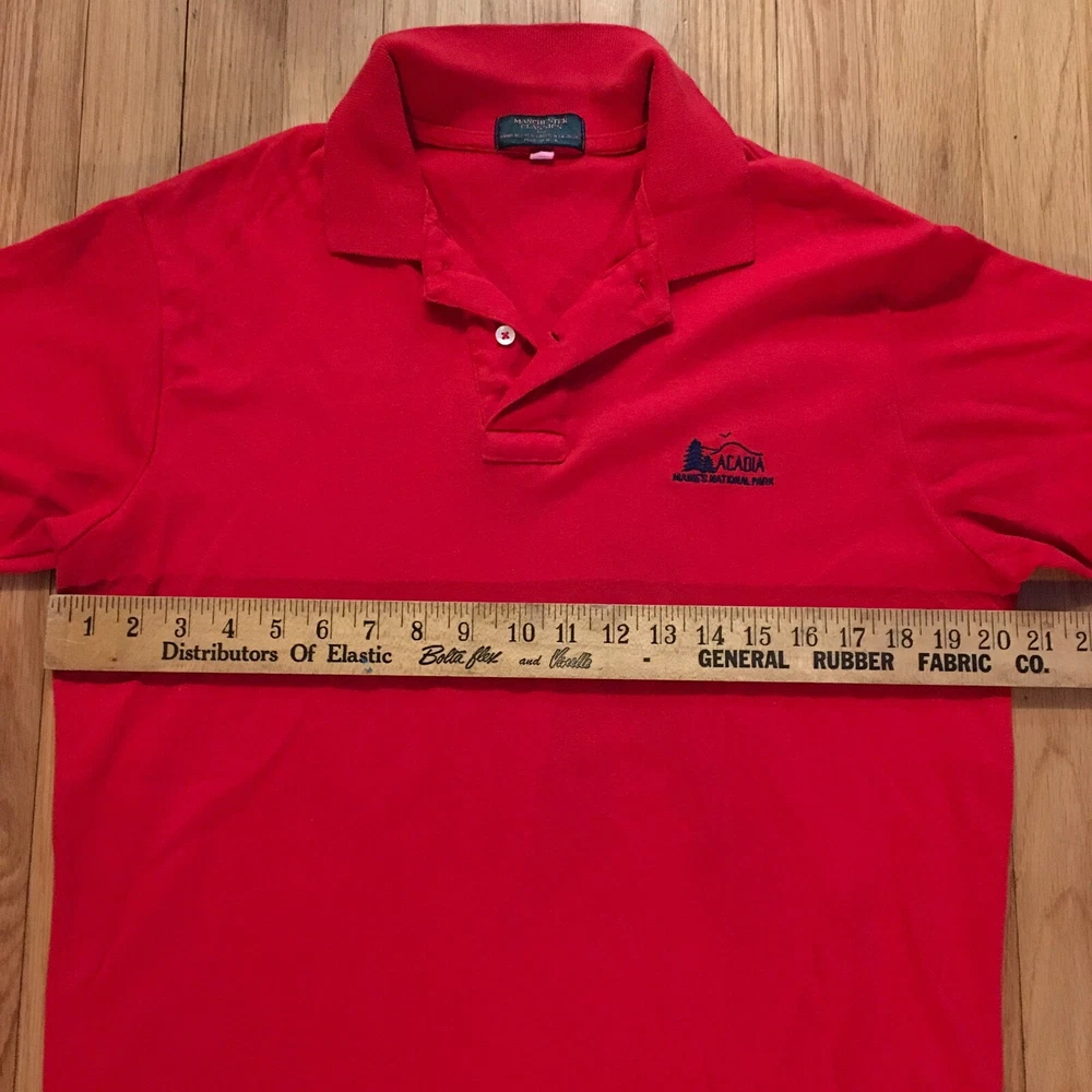 This vintage polo shirt is a great addition to any collection. With its solid red color and classic 80s theme, it's perfect for both men and women. Made from high-quality cotton, it's comfortable to wear and can be dressed up or down. The shirt is from Manchester Classics and was made in the United States. It's a size M and has a single stitch design. The shirt features a cool Acadia National Park design, giving it a unique touch. Whether you're a collector or just looking for a stylish polo, this shirt is sure to impress.