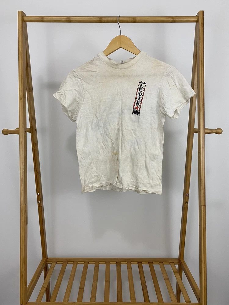 Size: Small (vintage sizing, review measurements please) Measurements (approximate) Length (laying flat) : 20.5" Shoulder to Hem Underarm to underarm (laying flat): 16" Condition: DOES HAVE STAINING AND YELLOWING Check out my other items!