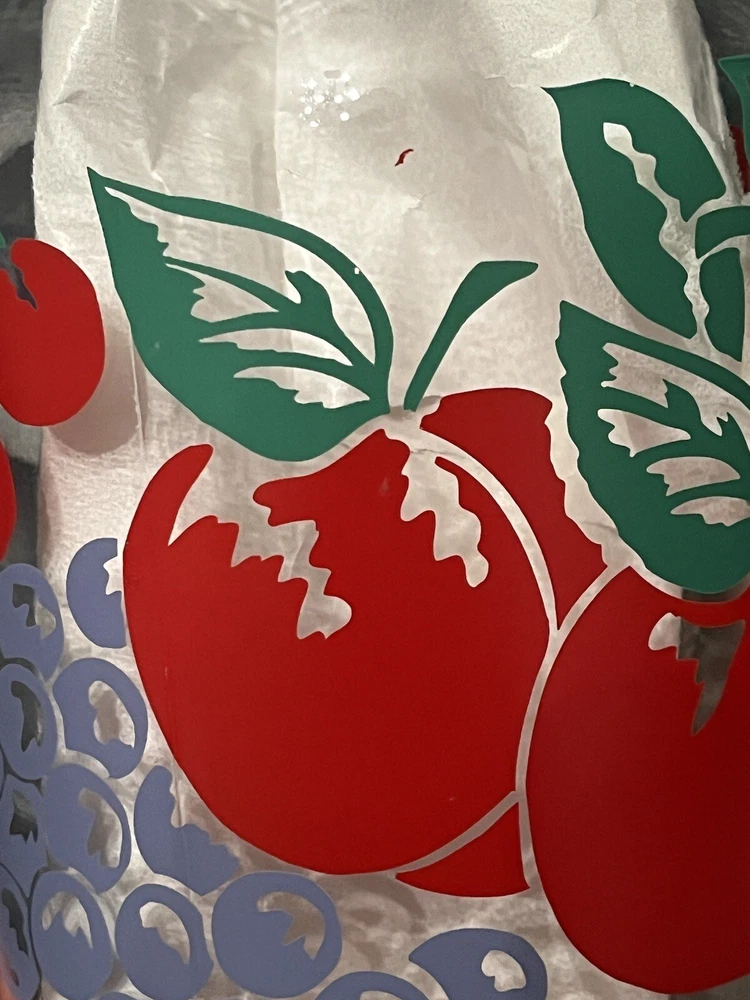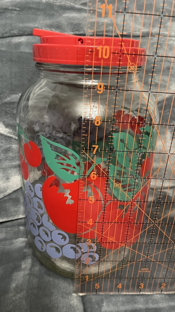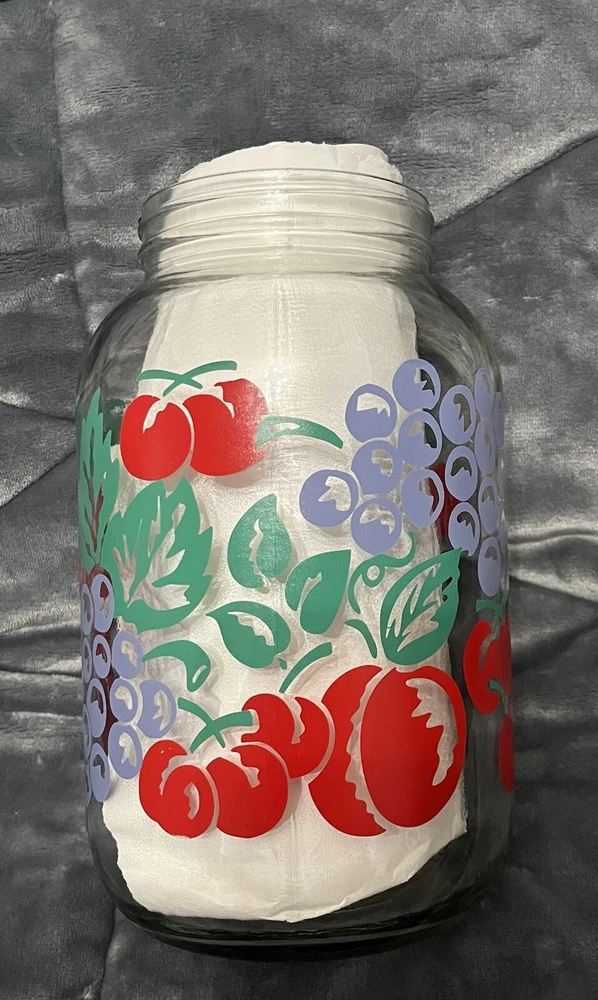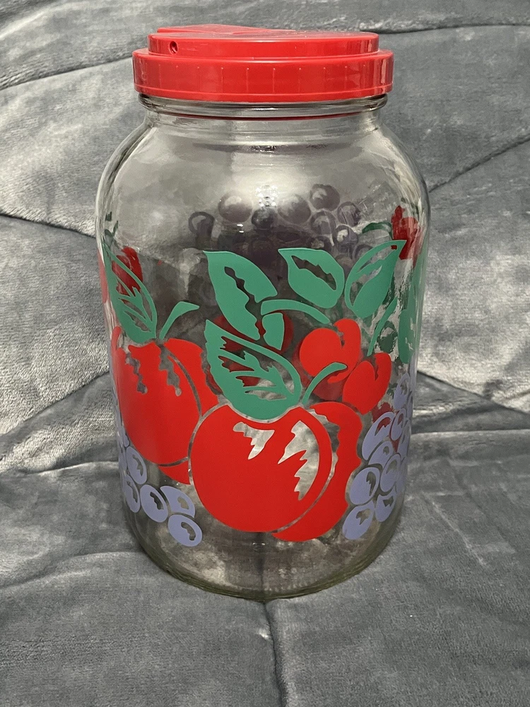 Nothing says summer quite like “sun tea”! Make a gallon while you & the kids are playing in the sprinkler without having to do a thing- ultimate way to use solar energy for a tasty and refreshing glass after a day of fun in the sun. This vintage 1 gallon capacity glass container from Anchor Hocking comes with a plastic , flip-top screw on easy to pour lid. As shown in pictures, the handle has been broken off and there are the occasional minor wear spots in the large fruit design, but this gorgeous gal has so many more summers to share with no cracks or chips! Compare to its coordinating 1/2 gallon jar mate in separate listing, perfect for amy collector’s set! Love vintage? ME, TOO! Don’t forget to check out my other vintage glassware, ceramics, china, pewter, jewelry, clothing, and holiday listings while you are here! Thanks for stopping by 🤗