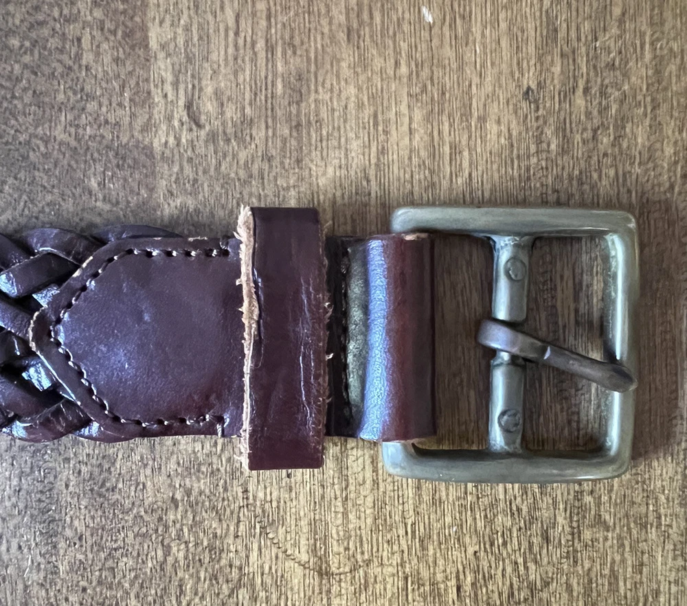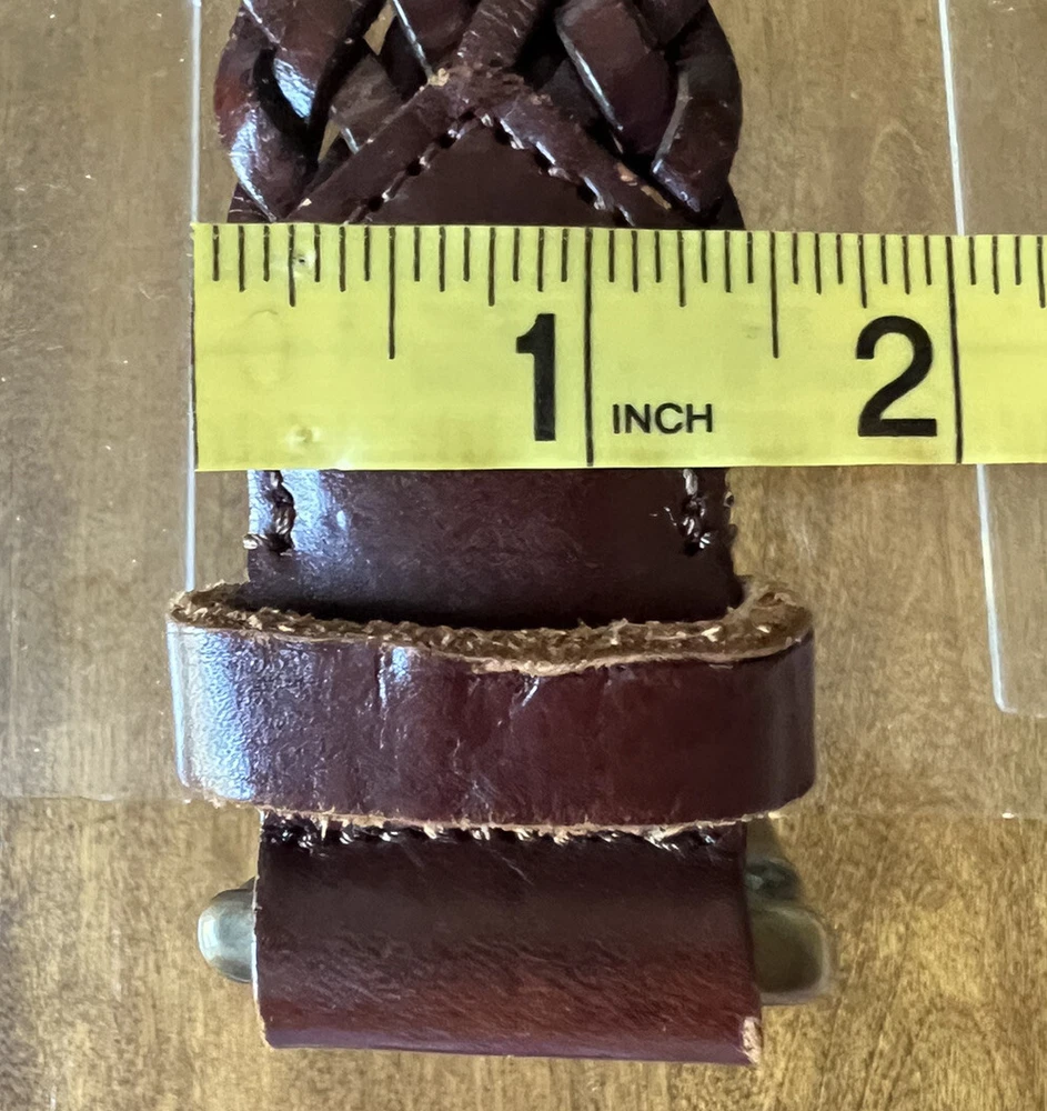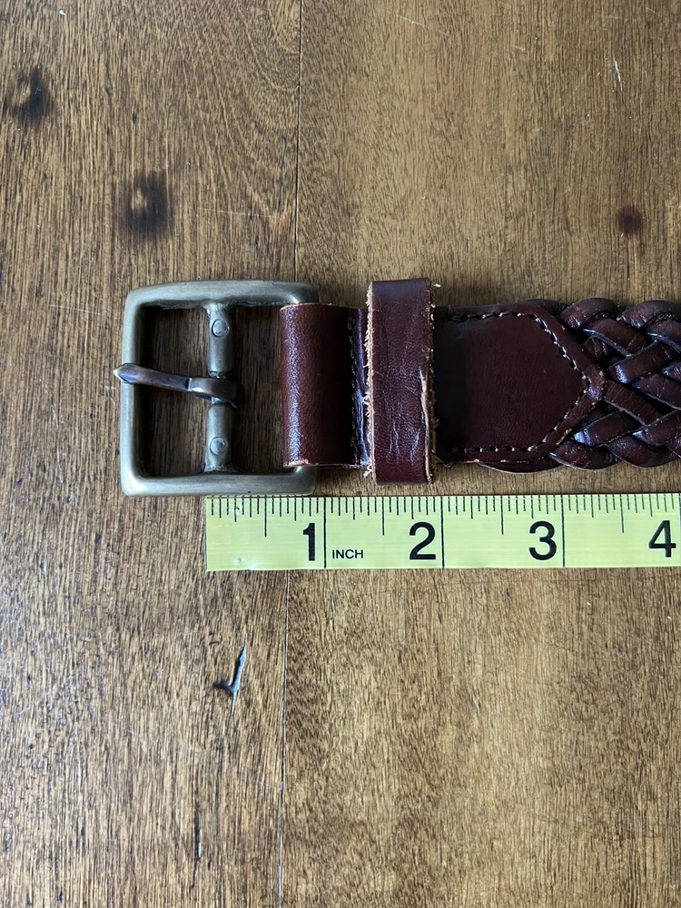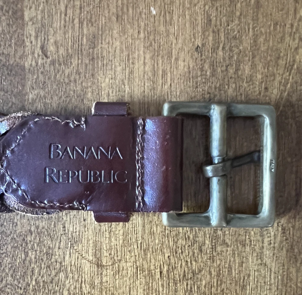 Beautiful Condition! This vintage braided leather belt from Banana Republic is a stylish and high-quality addition to any wardrobe. Crafted in Italy, this original piece features brass hardware and a rich brown color that complements any outfit. Its size is perfect for women in XS/S and it is a great accessory for vintage lovers. With its unique design and quality materials, this belt is a must-have for any fashion-forward individual. The Banana Republic brand is known for its attention to detail and this belt is no exception. Whether you're looking to add a touch of vintage charm to your outfit or simply need a reliable accessory to complete your look, this belt is the perfect choice.
