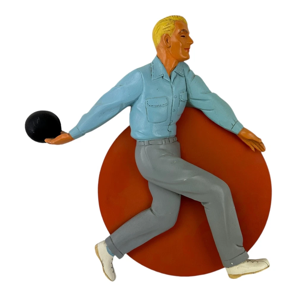 This vintage wood sign featuring a man bowling is a must-have for any collector of retro advertising. With its classic 1950's-60's Rockabilly style, it's a great addition to any store display or collection of merchandise and memorabilia. The sign's brand is unknown, but its Type of Advertising is clear - it's a sign designed to promote bowling, a popular activity during the mid-20th century. It's perfect for those who appreciate the history and style of advertising from that era. The date of creation is also specified, making it a valuable piece of collectible advertising.