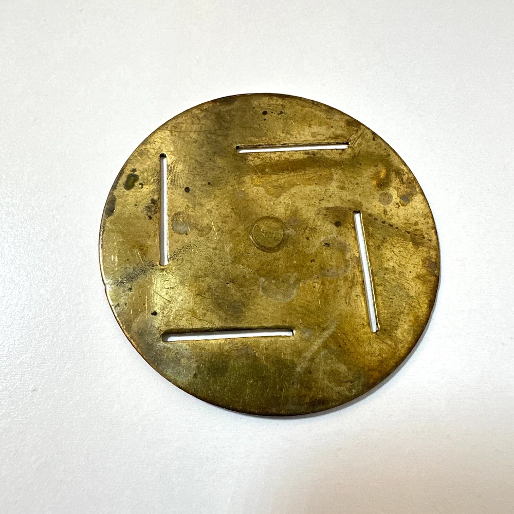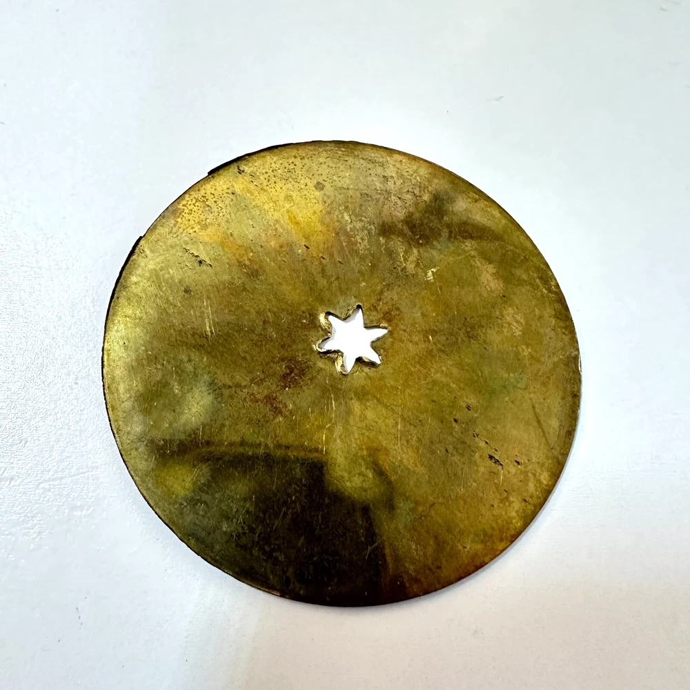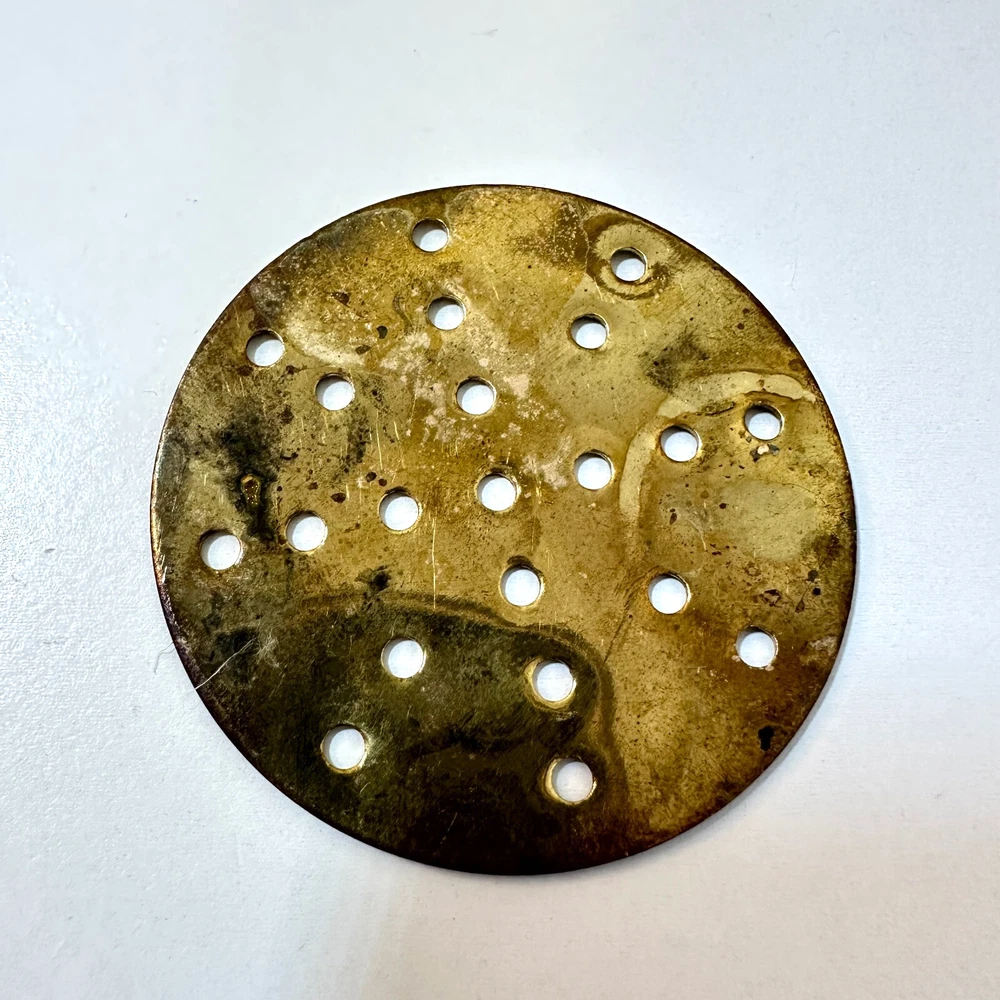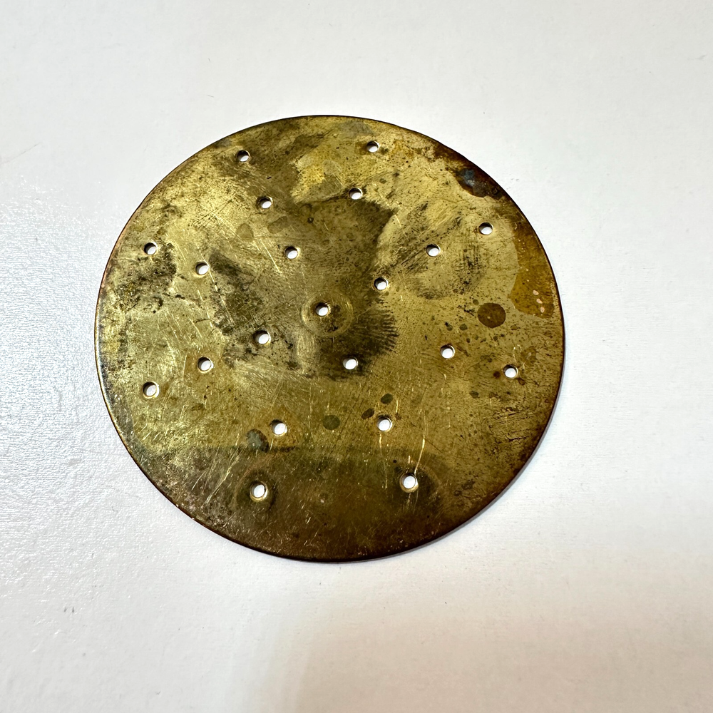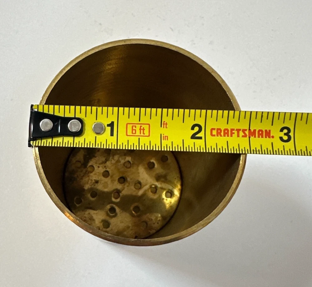 Vintage Brass Jamboli #5 Food Press Retro Kitchen Tool Hand Crank Brass Noodle Mill Approximate Measurements (inches): 2.5" round x 6" h at lowest setting x 9" h when fully unwound Weight: 1 lb, 7 oz The Vintage Brass Jamboli Food Press is a retro kitchen tool that features a hand crank mechanism. Made of brass, this small-sized food press includes 4 discs of varying shapes for pressing dough or pasta. Pre-loved & in great used condition. Some signs of age throughout consistent w/ age, including patina on multiple surfaces. See photos for close ups & measurements. Ready to ship!