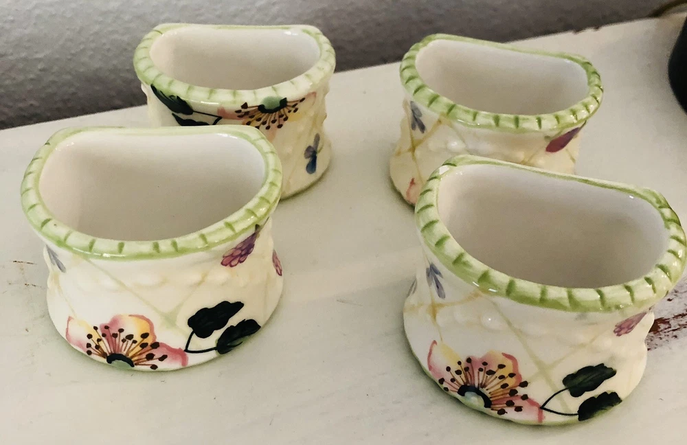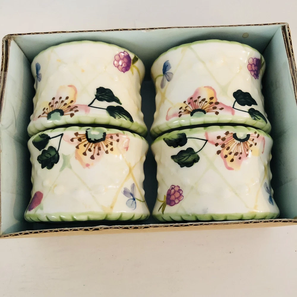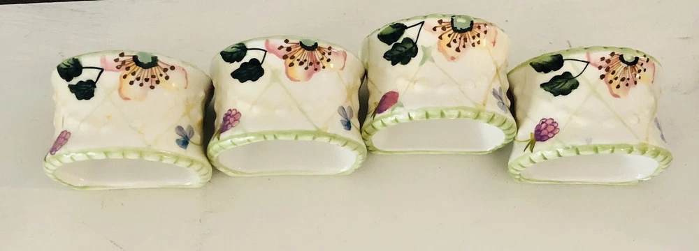 VTG Ceramic Napkin Ring Holders Tracy Porter Evelyn Collection Floral Cottage