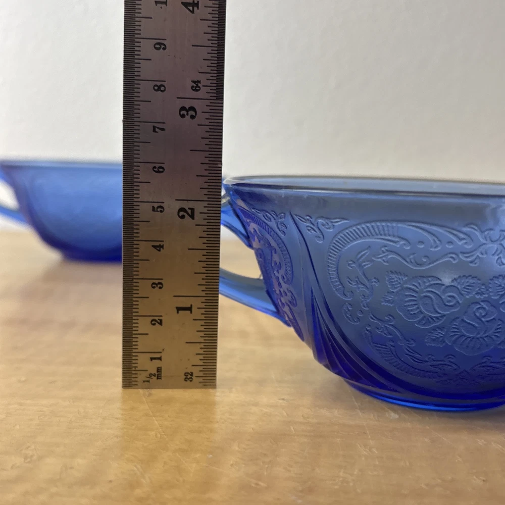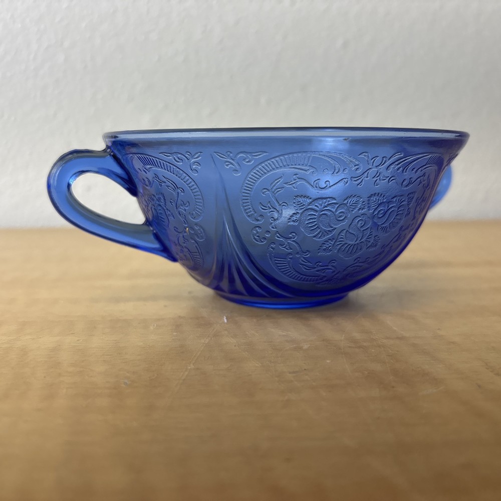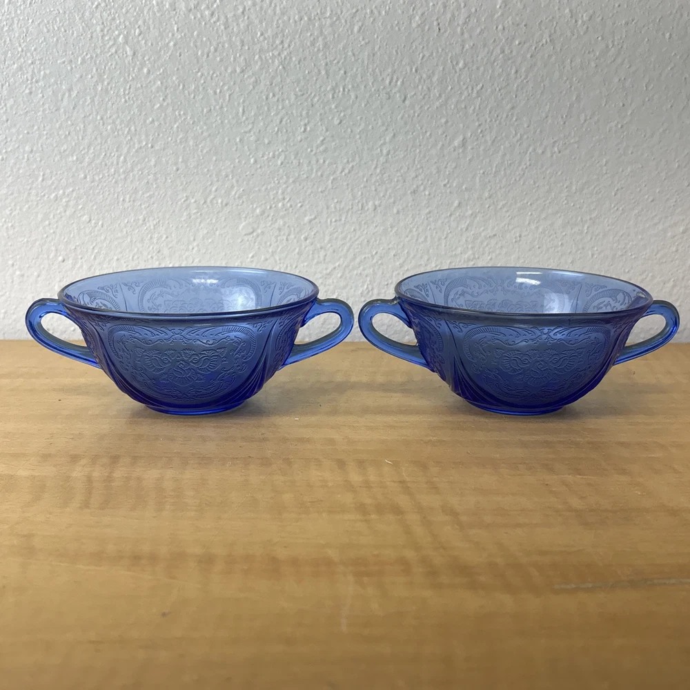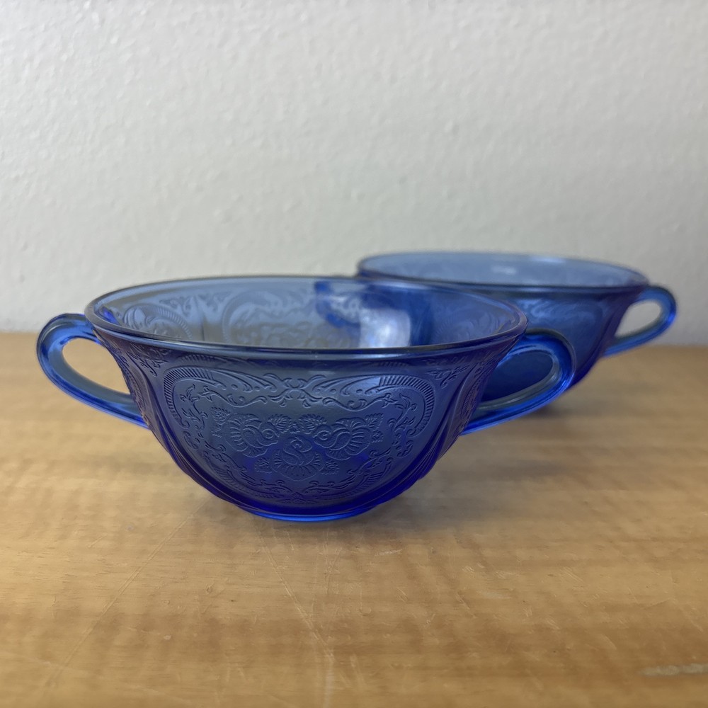 VTG Cobalt Blue Double Handled Candy / Tea Cup Royal Lace Hazel Atlas Set of 2