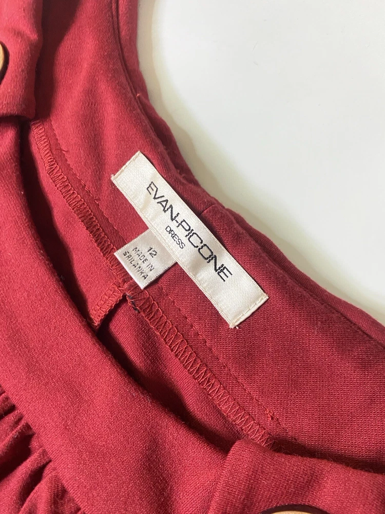 VTG EVAN PICONE Red Sheath Dress Copper Button Old Money Y2K Detail Size 12. Condition is Pre-owned. Shipped with USPS Ground Advantage.