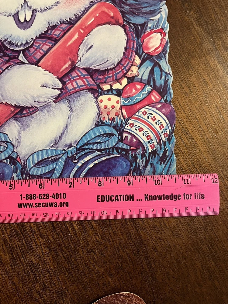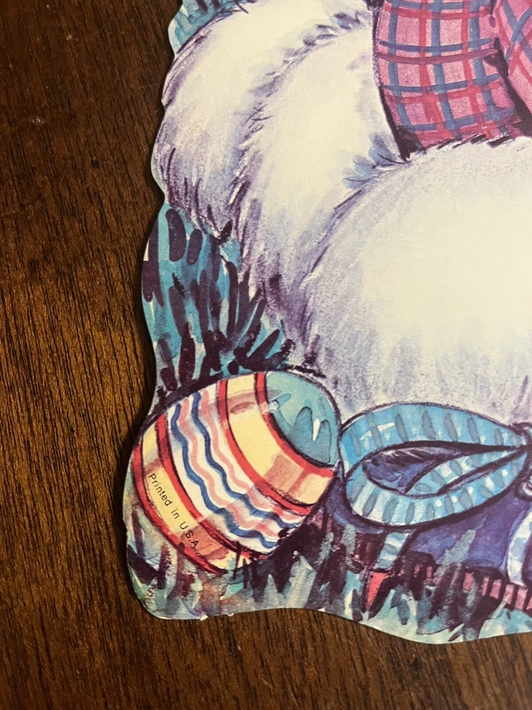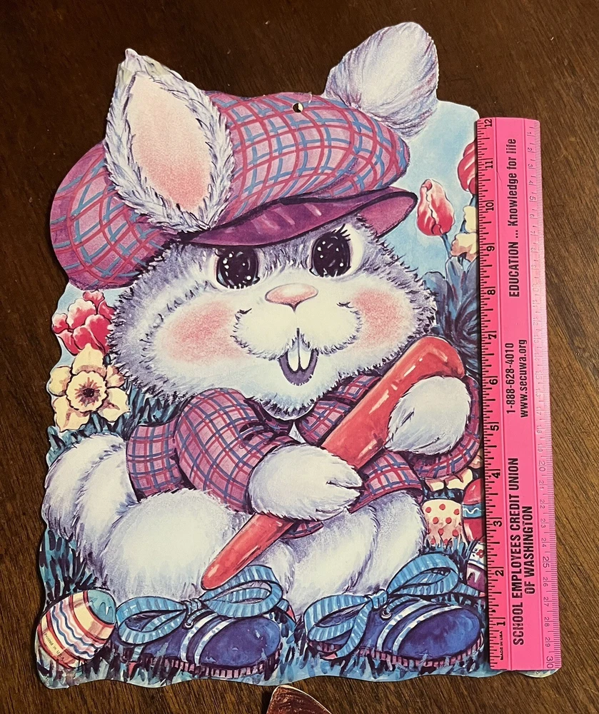 VTG Easter Bunny holding a carrot in a dress jacket and cap. Paper Wall Decor USA 15” Mid Century . Condition is Used. Shipped with USPS Media Mail.