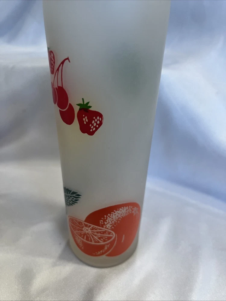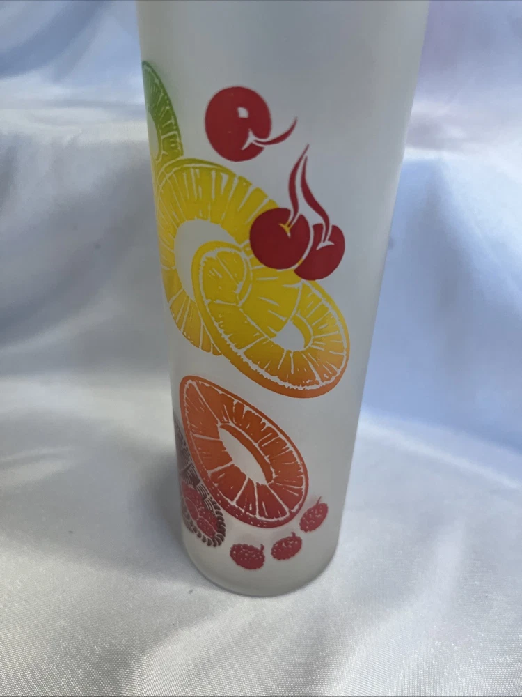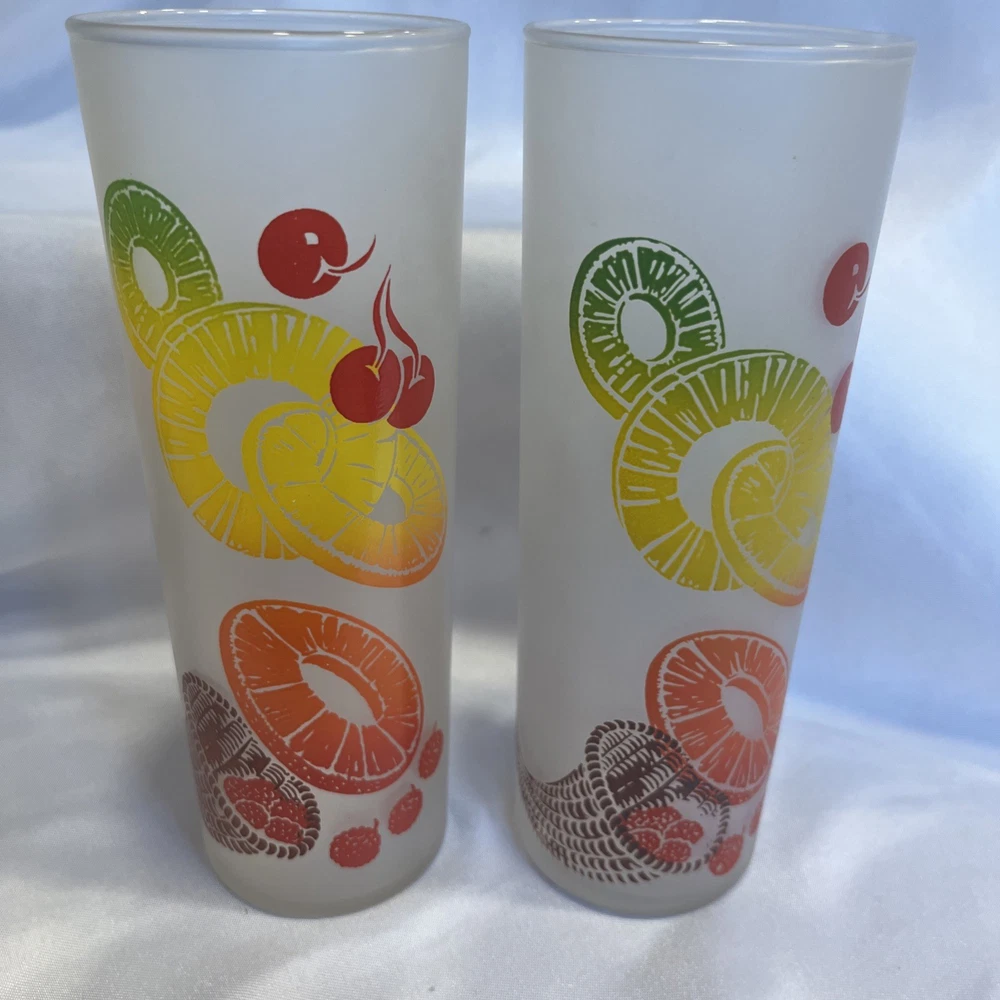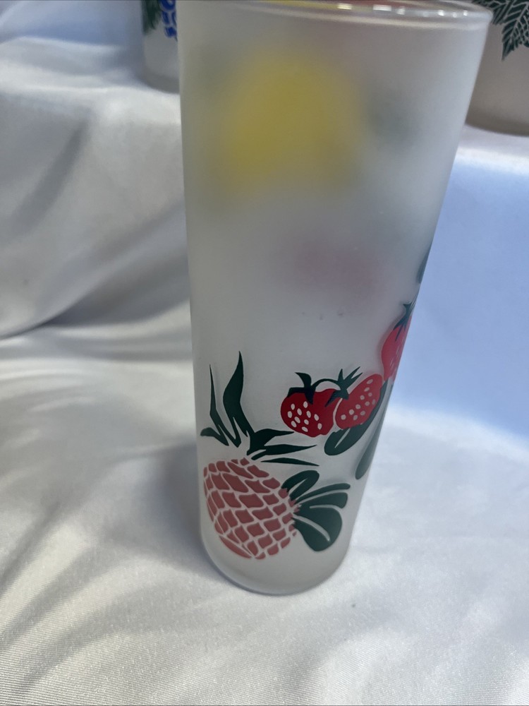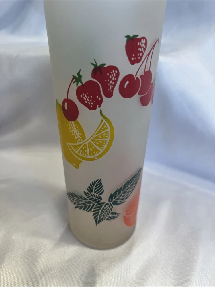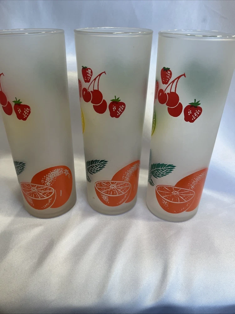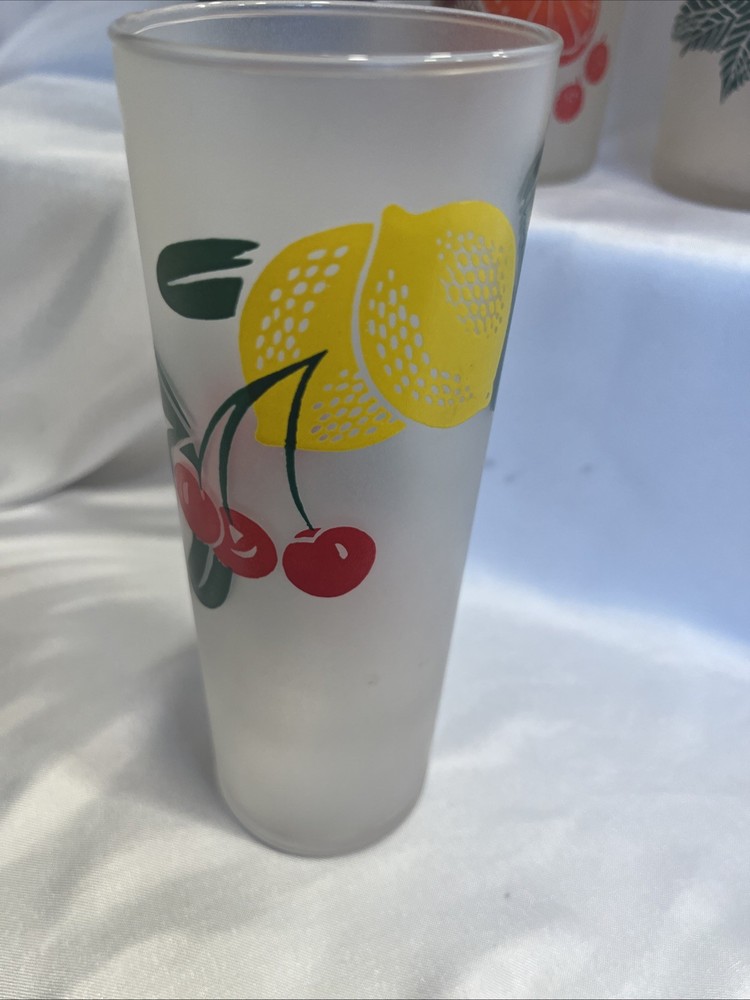 The VTG Federal Glass Frosted 1950s Tom Collin's Fruit Juice Glass Set of 9 is a vintage collection of colorful drinking glasses perfect for all occasions. Made of glass in the United States during the 1950s, these decorated juice glasses feature a barware theme and a unique 1950s style. The set includes 9 original pieces from the Federal Glass brand, adding a touch of nostalgia to any kitchen or dining area. Perfect for collectors or those looking to add a retro flair to their glassware collection, these vintage juice glasses are a charming addition to any home.