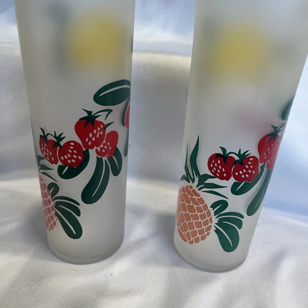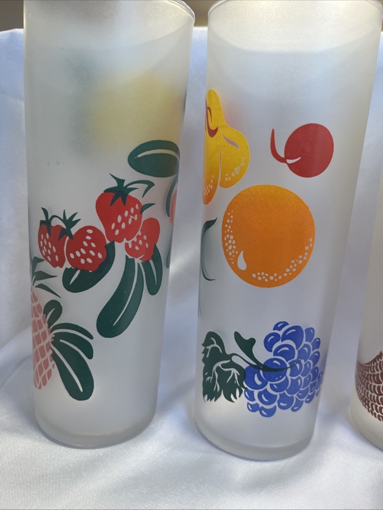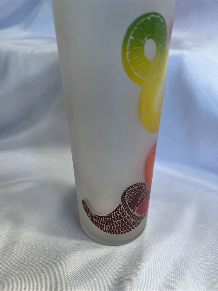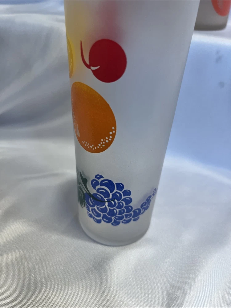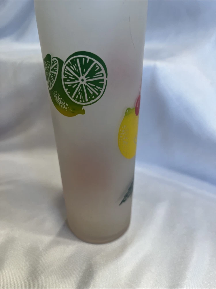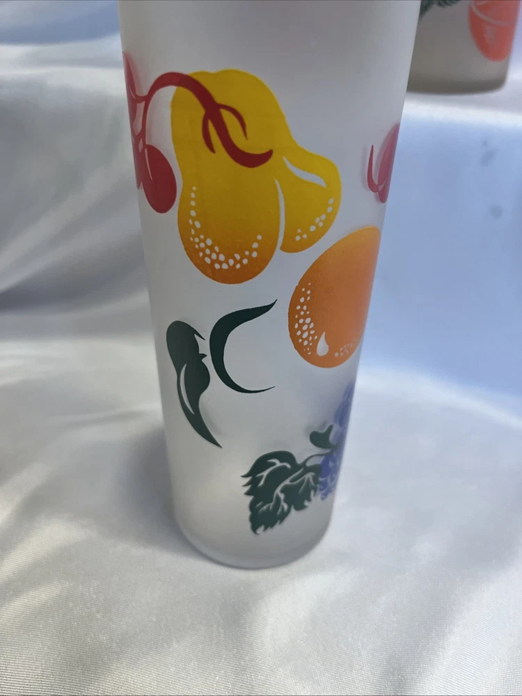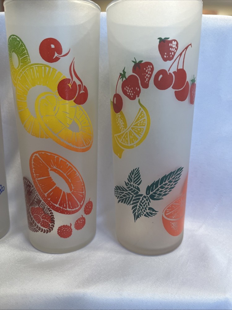 The VTG Federal Glass Frosted 1950s Tom Collin's Fruit Juice Glass Set of 9 is a vintage collection of colorful drinking glasses perfect for all occasions. Made of glass in the United States during the 1950s, these decorated juice glasses feature a barware theme and a unique 1950s style. The set includes 9 original pieces from the Federal Glass brand, adding a touch of nostalgia to any kitchen or dining area. Perfect for collectors or those looking to add a retro flair to their glassware collection, these vintage juice glasses are a charming addition to any home.