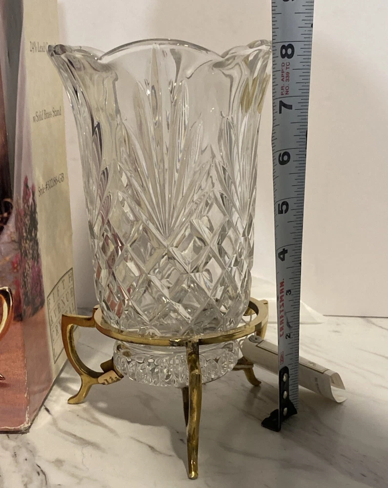 VTG Fifth Avenue Crystal Vase On Brass Pedestal - Essex Design - Made In Poland NEW Old Stock-Box opened only to confirm condition, inspect and take photos. Thank you for looking and supporting my small business!