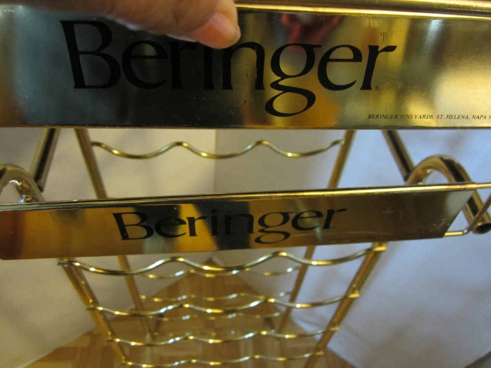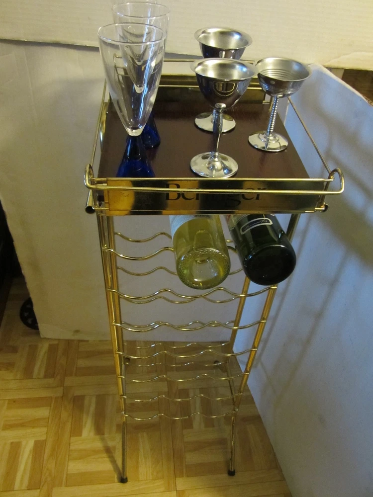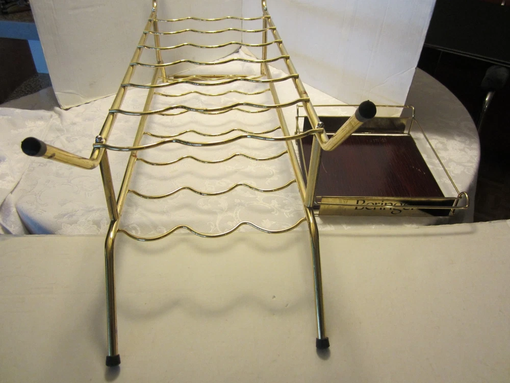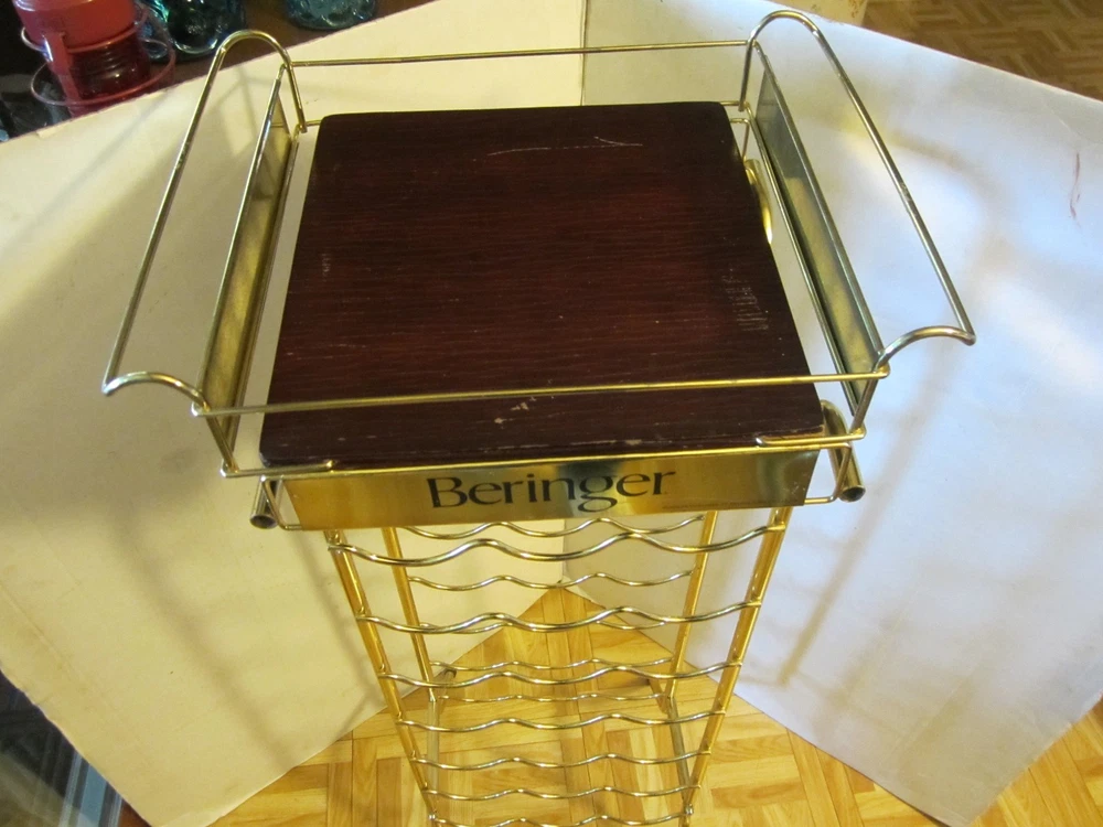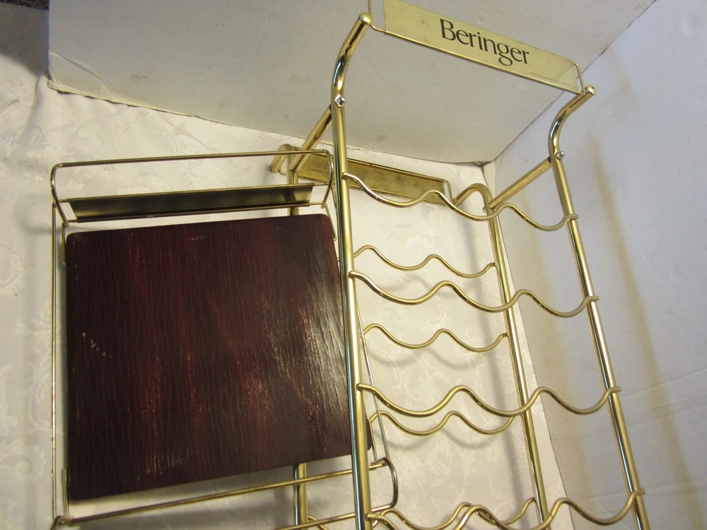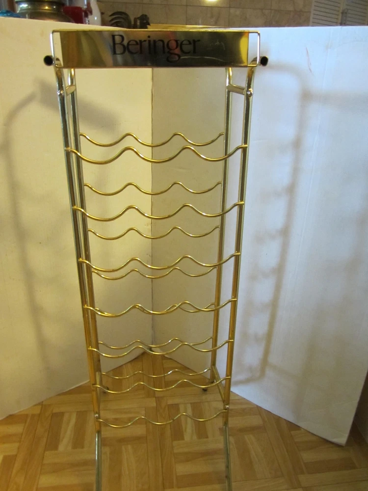 Description:10-25-12-6 Vintage RARE Freestanding 21-Bottle Stand RACK metal & Wood Store display 36"H BERINGER VINEYARDS- This is an advertising metal wine rack Store display "Beringer Vineyards Santa Helena Nape Valley" California. The Name brand is on it 4 times – twice on the serving tray and twice on the rack on the metal part. Holds 21 bottles of wines + glasses on the serving tray. Wine bottles & glasses are NOT included- only the rack- showing how to use it. The approximate measurements are for the rack 36" high 11.50 "wide 13.50 "deep. At the base it's 14"x 11.50”. The tray is 10” square. Note: the rack will be disassembled to save on shipping a pliers or adjustable wrench is all you need to put it together. Great vintage condition-No damage- there is a little rust on the gold metal wire on the legs The wooden tray has some scuffs - Very cool looking wine rack for your man cave/restaurant/kitchen/bar/store. Zoom and view all pictures for more details as they are part of the description I DO MY BEST TO DESCRIBE EVERY LISTING BUT I AM NOT AN EXPERT AND ITEMS ARE SOLD “AS IS”. My idea of great/good may be different than yours, so EXAMINE PHOTOS CAREFULLY since they are binding and a supplement to the word description in case, I should miss something. If I fail to mention something, it does not qualify as “item not as described” if it shows in my pictures. EACH PHOTO IS WORTH A THOUSAND WORDS AND THEY ARE OF THE EXACT ITEM YOU WILL RECEIVE. RETURN POLICY: Returns are acceptable ONLY if the item doesn’t match the description, is defective, or grossly misrepresented. THIS MEANS I DO NOT ACCEPT RETURNS for FIT, SIZING, COLOR ISSUES, OR BUYER'S REMORSE. Please zoom and view ALL pictures for more details as they are part of the description. Email me with any questions you may have. Please note: Buyer pays ALL return shipping and fees. Postage is fully tracked FEEDBACK I do not leave feedback until the end of a transaction. The transaction is considered over once I receive feedback from you confirming that you have received it and expressed satisfaction with it. If you are unsatisfied with your purchase, please contact me before leaving a neutral or negative feedback- so I can fix the issues.