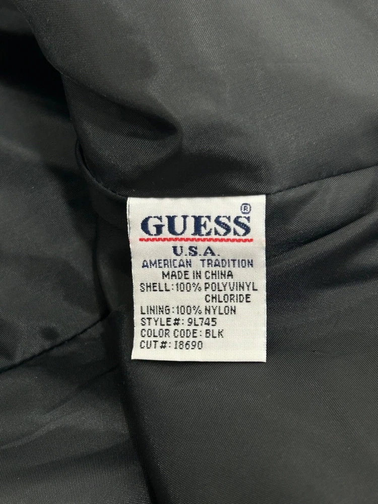 In mint used condition with no flaws to note! Vintage Guess Overalls Mini Dress in Black Vegan Leather Overalls style with a mini dress length Button snap closure in back Baggy/loose fitting through torso 1 pocket in front with Guess logo Ideal to layer overtop an outfit Straps are adjustable Made with vegan leather/polyurethane/nylon Length top to bottom: 34" - adjustable Pit to pit/chest-line: 15" #vintageguess #guessdress #overallsdress #veganleatherdress #guessminidress #veganleather #overalls #overallsminidress