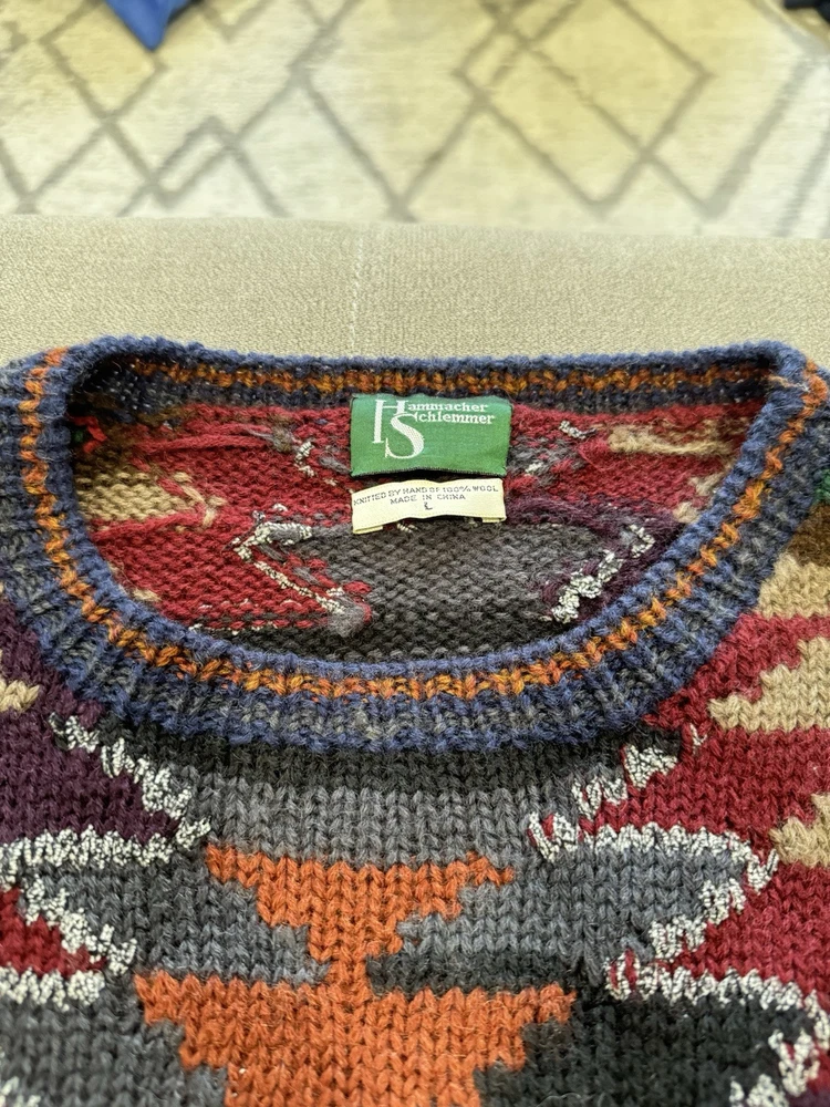 VTG HAMMACHER SCHLEMMER 100% WOOL HAND KNIT BIGGIE COSBY TRIBAL INSPIRED SZ L