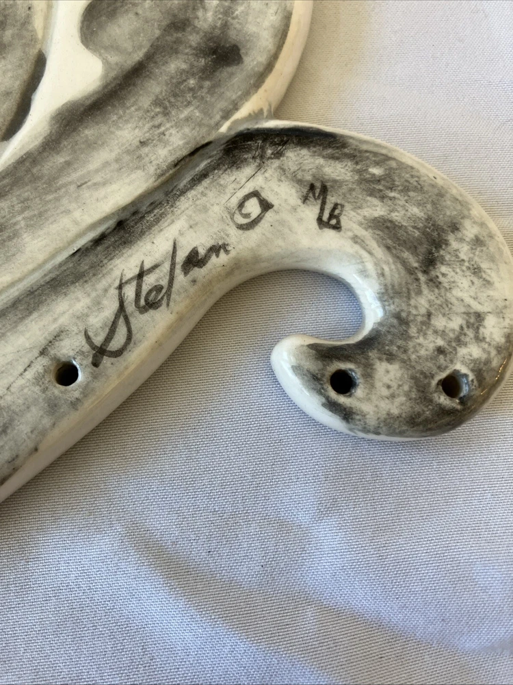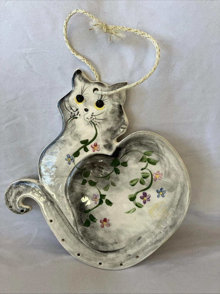 Elevate your home decor with this charming vintage ceramic cat wall hanging. Expertly crafted with a keen eye for detail, this adorable feline trivet is sure to add a touch of whimsy to any room. It's the perfect blend of functionality and aesthetic appeal, handmade with care to ensure a unique addition to your collection. Measuring 8 inches in height and width, this pottery piece is modestly sized, making it an ideal accent for small spaces or a part of a gallery wall. Despite its unknown origin, the quality and character of this trivet are unmistakable, and it comes fully signed, ready to grace your home with its presence.
