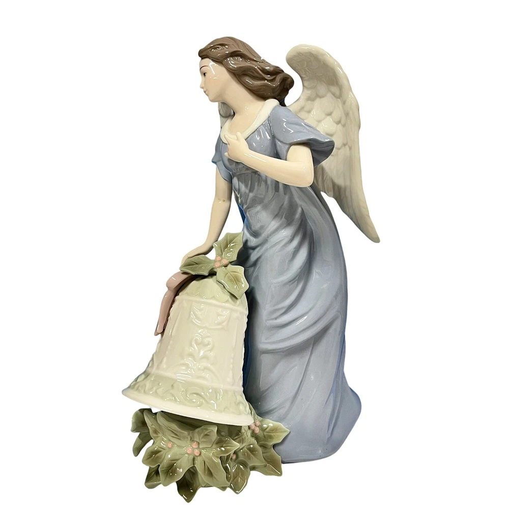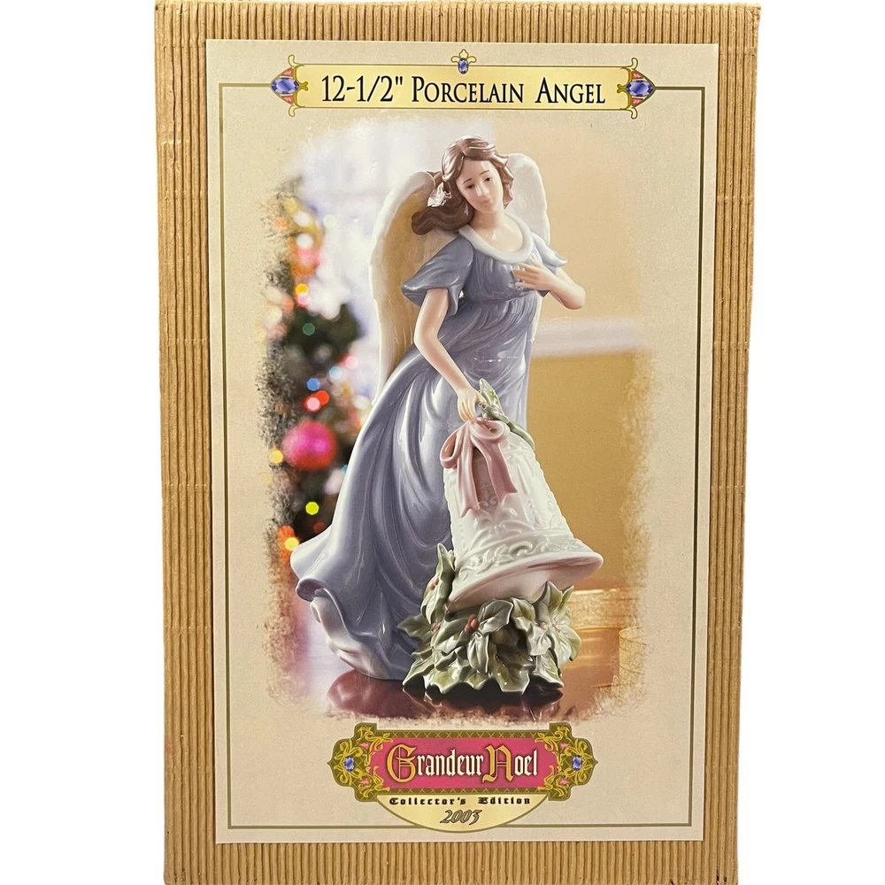 2003 Collectors Edition Grandeur Noel Hand Painted Porcelain Christmas Angel With Bell. Beautiful detailed angel with holly adorned bell. 12 inches tall. In perfect condition. Box is a little rough from being in storage since 2003.