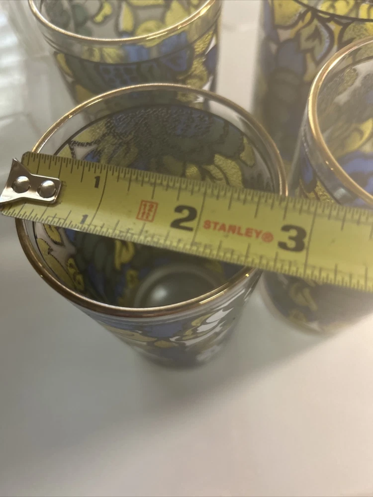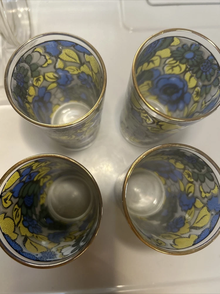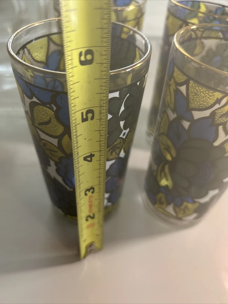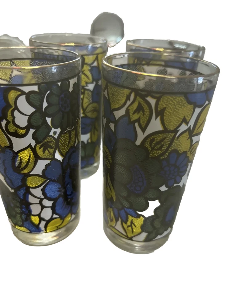 Up for sale is a set of vintage Hazel Atlas highball glasses. These colorful glasses feature a stained floral design with gold rims and gold-rimmed glass coasters, PLUS the organization holder for them all making this a perfect addition to any collectors' set. The set includes a clear acrylic carrying storage case, making them easy to transport and store. These glasses are perfect for enjoying your favorite beverage and are sure to impress your guests. Don't miss out on the chance to own these unique and stylish glasses! RETRO BAR MUST HAVE!!! awesome colors and excellent condition *** check out our eBay store for other BAR must haves like vintage retro ice buckets!!!!