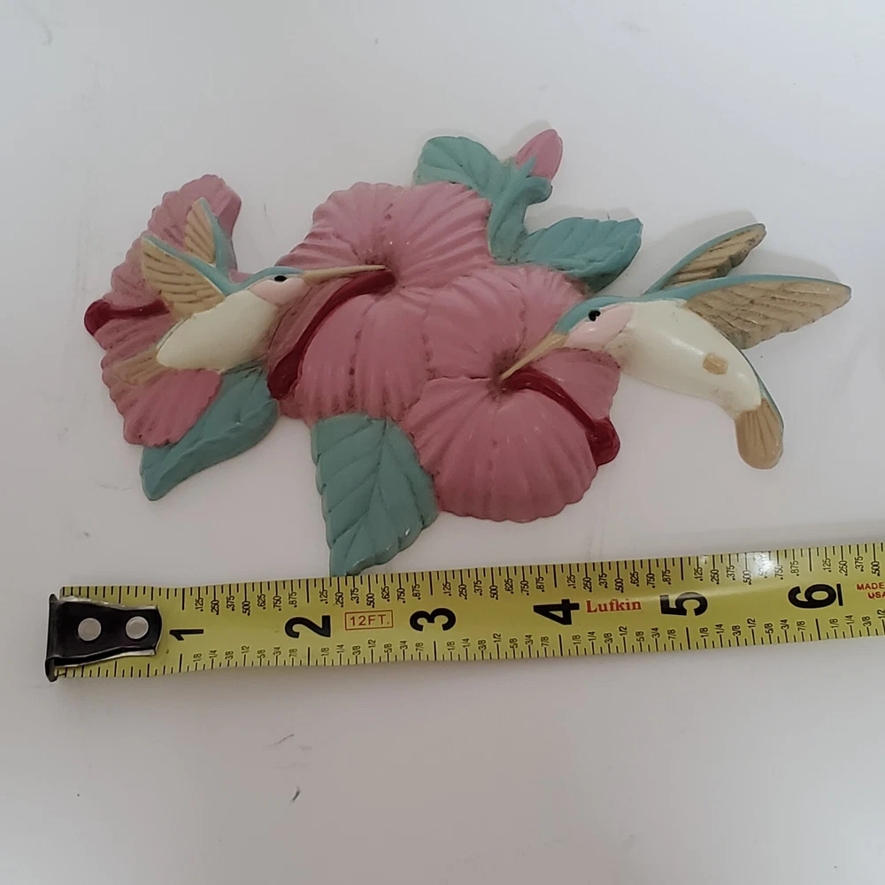 Vintage Burwood Products USA Wall Hanging Plaque 3303 Hummingbird Flowers. Grannycore. Excellent Condition
