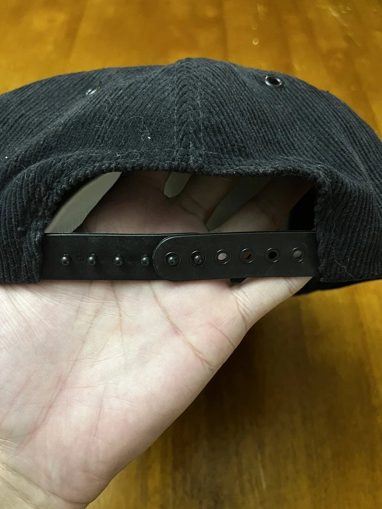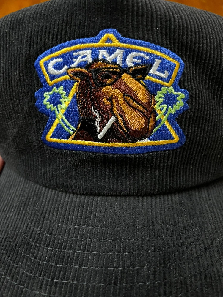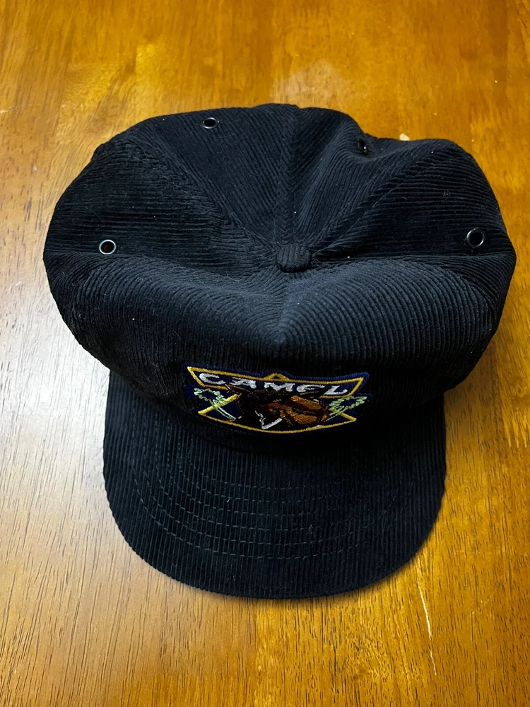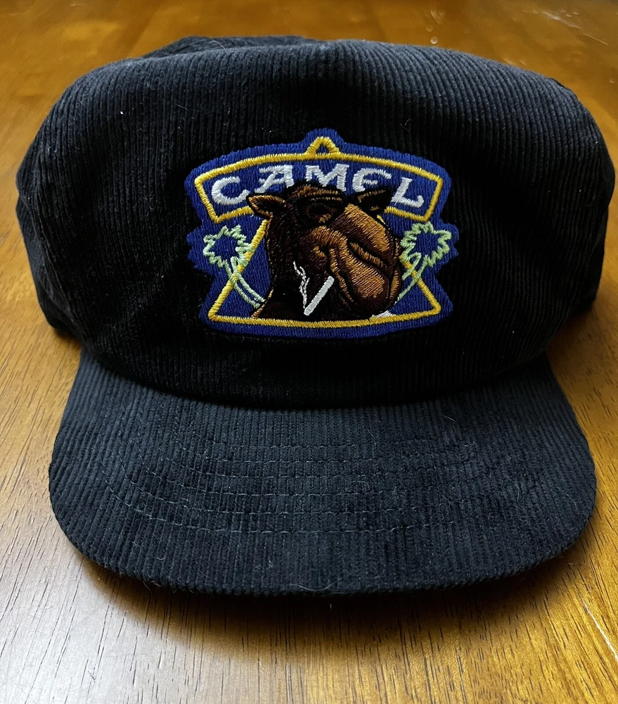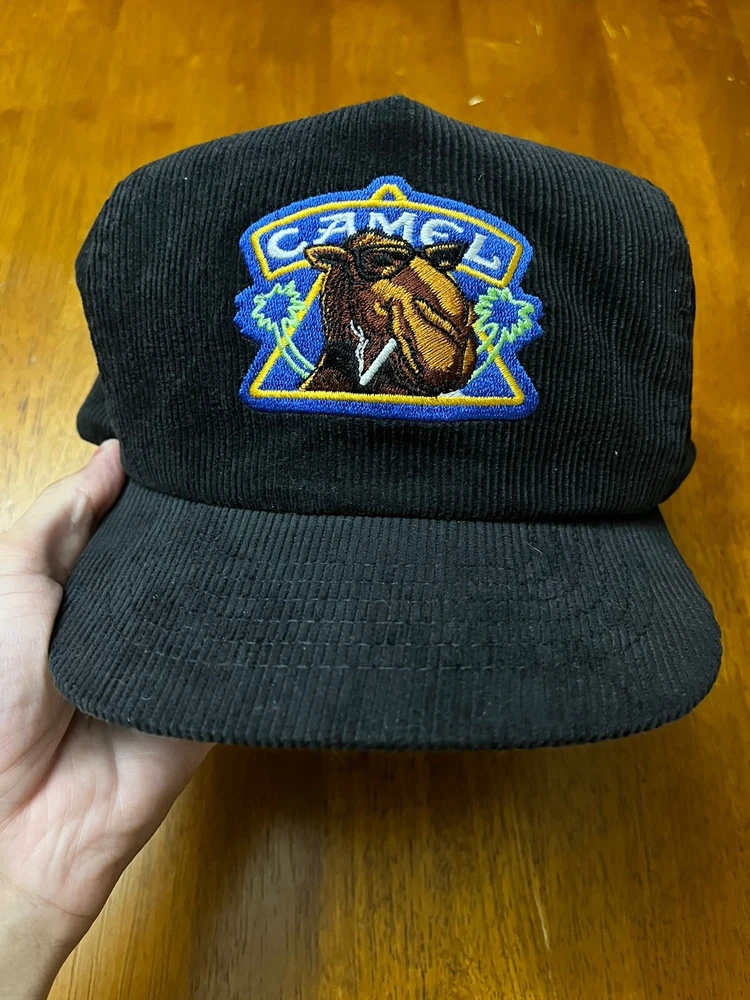 VTG Joe Camel Hat Cap SnapBack Corduroy 90s Spellout Black