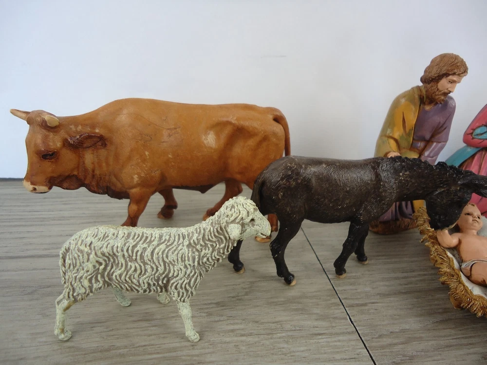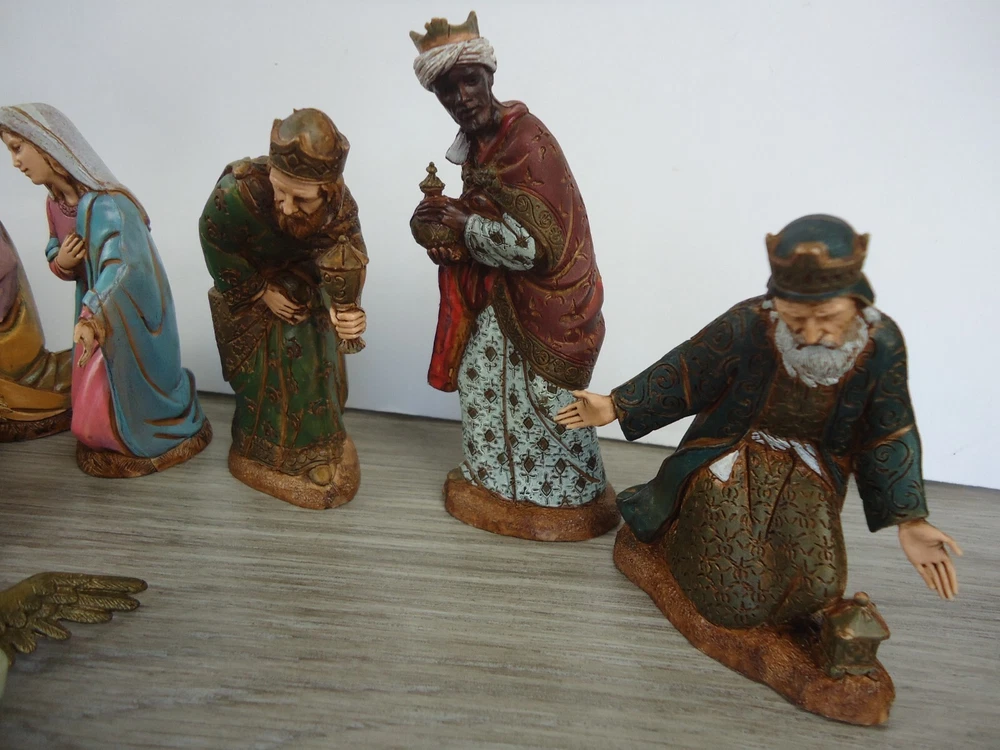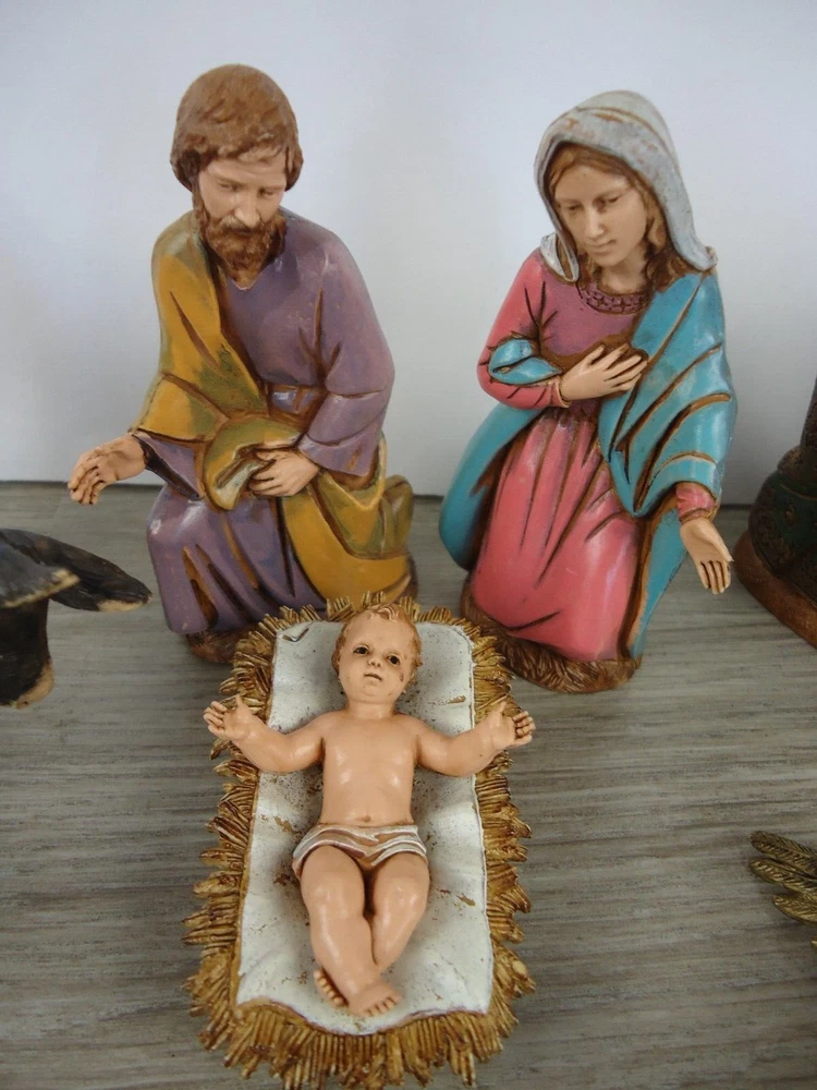 VTG Landi 10 pc. Nativity Figures Christmas Holiday Decoration Made In Italy There is a piece of "straw" on the side of the manger that is broken. There is a bit broken off of the base of one of the wisemen. These are both shown up close and pointed out in the pictures.