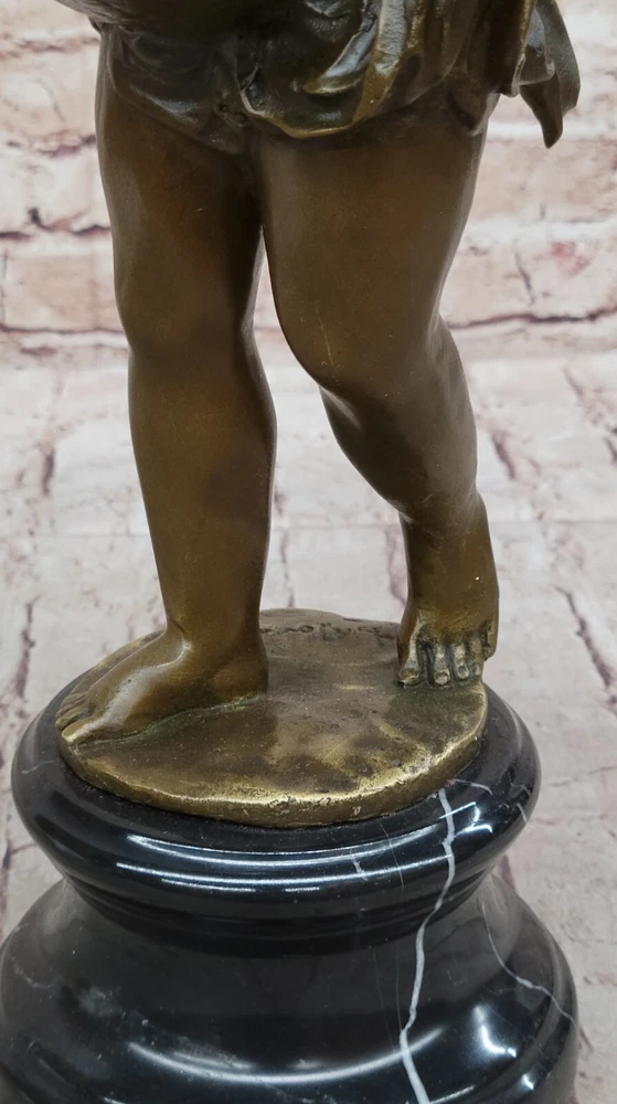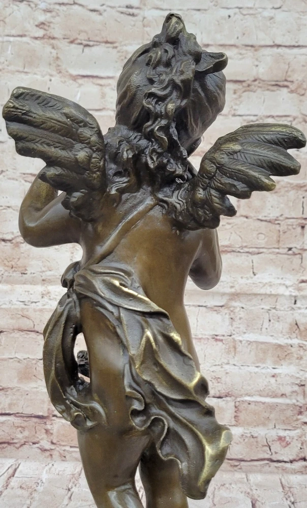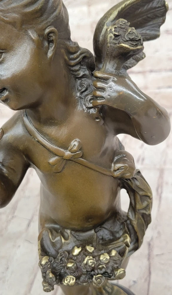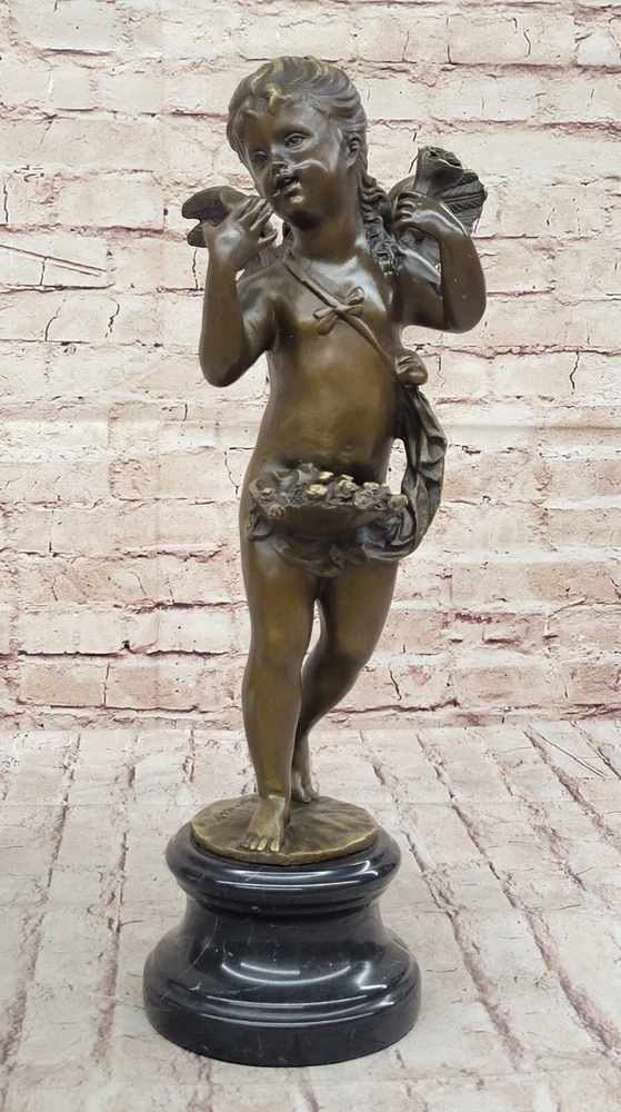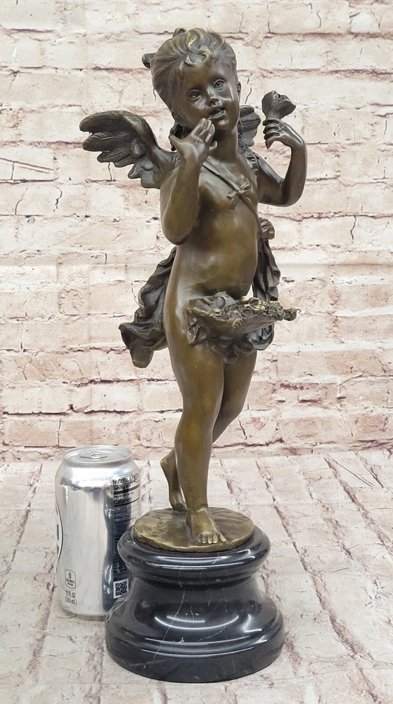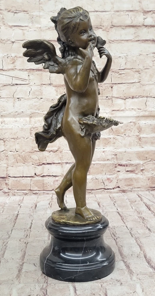 Condition : This sculpture is in perfect condition. Bronze Dimensions with Marble Base: Height 17" X Width 7" Marble Dimensions: Diameter 5" Height without base:14" Weight:12 LBS Inventory:28Y2605582 Step into a world of enchantment and divine beauty with this captivating bronze sculpture titled "Cherubic Angel Among Ruins." This exquisite artwork transports you to an ancient enchanted garden where a cherubic angel has descended from great heights. As she gracefully lands on a large stone, her wings begin to flutter shut, and her eyes search for the divine purpose of her journey. The artist has masterfully crafted every detail of this sculpture, from the cherubic angel's serene expression to the intricate textures of her wings and the weathered stone beneath her. The use of the ancient lost-wax casting method ensures that every nuance is captured with precision and care. The sculpture is finished with a brown patina, adding to its timeless and ethereal quality. Mounted on a variegated black marble base and bearing the signature of the artist A. Moreau, this sculpture is not only a work of art but also a symbol of beauty and spirituality. It invites you to contemplate the mysteries of the divine and the enchantment of the world beyond. Whether displayed in your home, garden, or a place of meditation, this cherubic angel will bring a sense of wonder and tranquility to any space. Bronze Sculpture Baby Girl Angel With Flower Sculpture Cherub Home Decor YRD-260 Video will open in a new window Using the eBay App? Paste link into a browser window: [isdntekvideo]