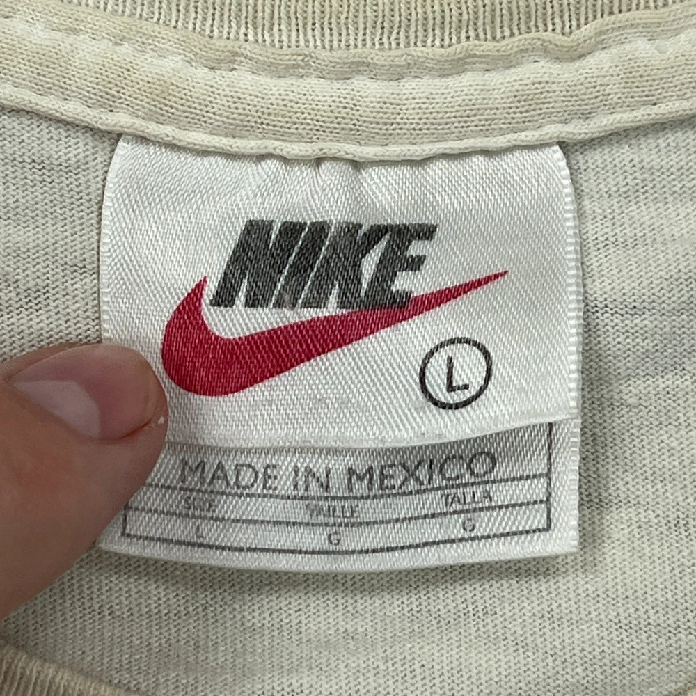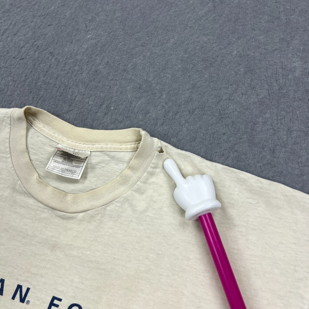 Used vintage condition with discoloration around the collar, a HOLE near the collar and on the front, a mark on the sleeve, and general wear as seen in photos I recommend measuring yourself before ordering online to help find the perfect fit for you (actual measurements may differ from the tag). Please view all photos for condition details/measurements and reach out with any questions- thank you.
