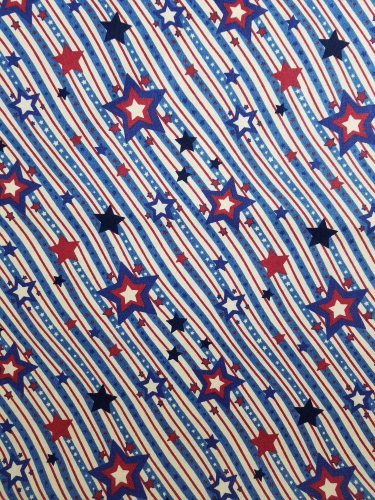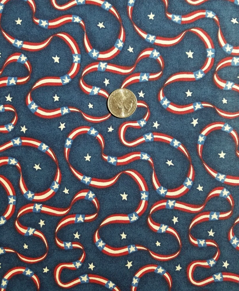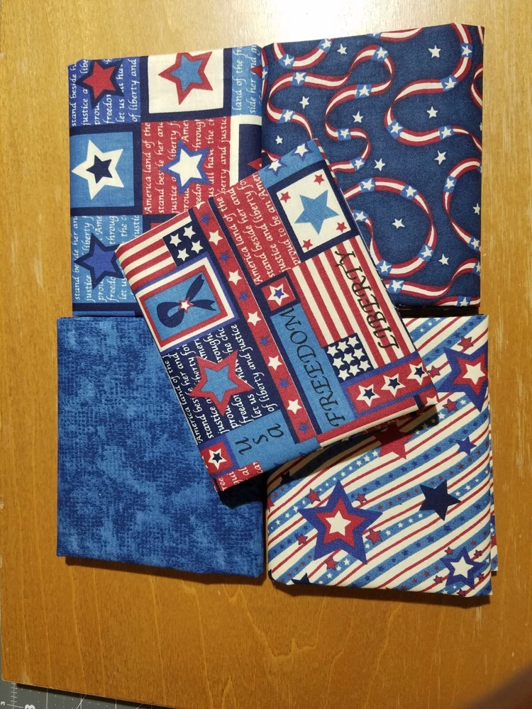 Most all of the fabric I am selling is Vintage and OOP that I bought years ago when I first started sewing and had plans......that life magically interrupted lol. πŸ˜‚πŸ™„ However, they are NEW, and are either on the bolt, or stored appropriately out of light and in totes, drawers or shelved and covered. Smoke free/pet free. Fat Quarters are 21/22"(dependent upon manufacturer) X minimum 18" ***the minimum cut is 18" but will run up to 23" lol, because that's just the way some pieces worked out, and I figure it's always a nice surprise to get a little extra sometimes :) This Listing is for (1) Patriotic FQ Bundle ~100% cotton, unbranded, "Freedom" line, made in the USA ~5 coordinating fabrics ~These fat quarters are larger than standard. **printing flaw along selvage of the ribbon print(see pic, thin white strip) -- to compensate, that FQ is 23X22. Whether you like to sew, craft or collect, this little bundle of Patriotic fabric will have a use. Questions?....please don't hesitate to ask :) Thanks for looking! SHIP TIME: Orders will ship within 24 hours of payment received unless it's a holiday or a weekend. Orders ship out USPS Ground Advantage--generally takes 3-5 days depending on where you live. I will combine shipping when it exceeds my cost to ship multiple orders. Please ask or use "request total" button before paying so shipping can be adjusted if possible. Or, just pay and I will refund you on excess shipping. I am not making money on shipping lol, the shipping is very close to, if not under what it costs me to ship :)