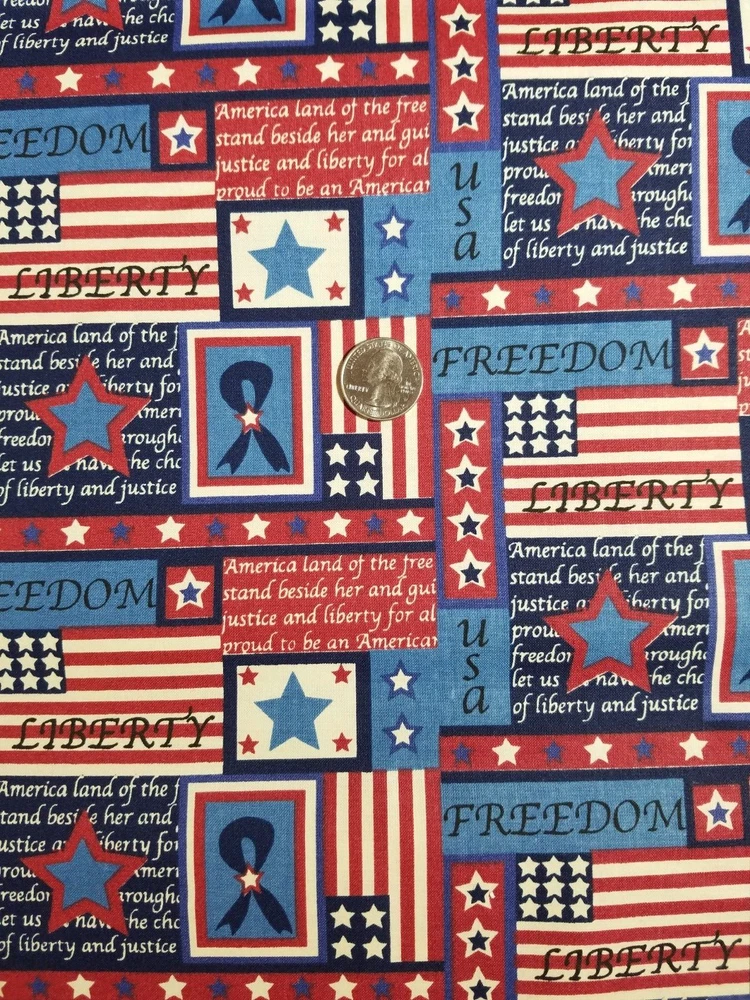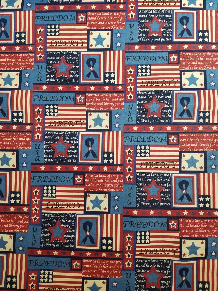 Model: "Freedom" line Pattern: various Length/Amount: Fat Quarters, Bundles Quilting Sizes: Fat Quarter (18" x 22") Material: Cotton Theme: America Suitable For: Accessories - Bags/Purses, Apparel - Everyday Clothing, Bedding, Blankets/Throws, Costume, Crafts, Curtains, Cushion, Pillow, Quilting, Table Top Unit of Sale: 1 FQ Bundle Brand: Unbranded Color: blue, red, cream, white Country/Region of Manufacture: United States Features: Antique/Vintage, OOP Fabric Weight: Medium Fiber Content: Cotton