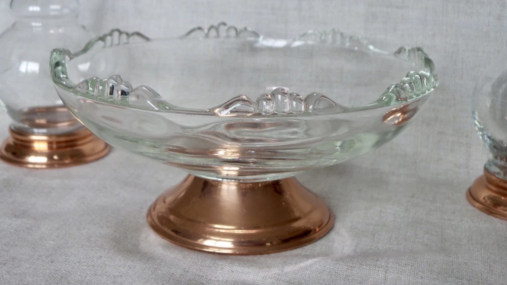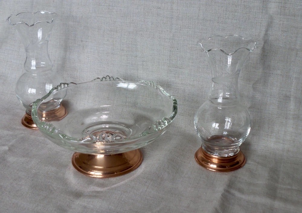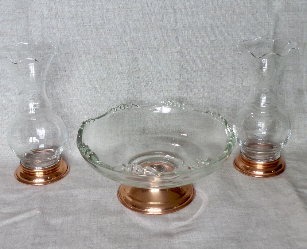 Beautiful etched Princess House trio pedestal compote bowl and matching vases. Excellent condition, no chips or cracks. The etching is a dainty vine wrapping around the vases. Please see pictures for details and measurements. Respectable offers seriously considered No international shipping.