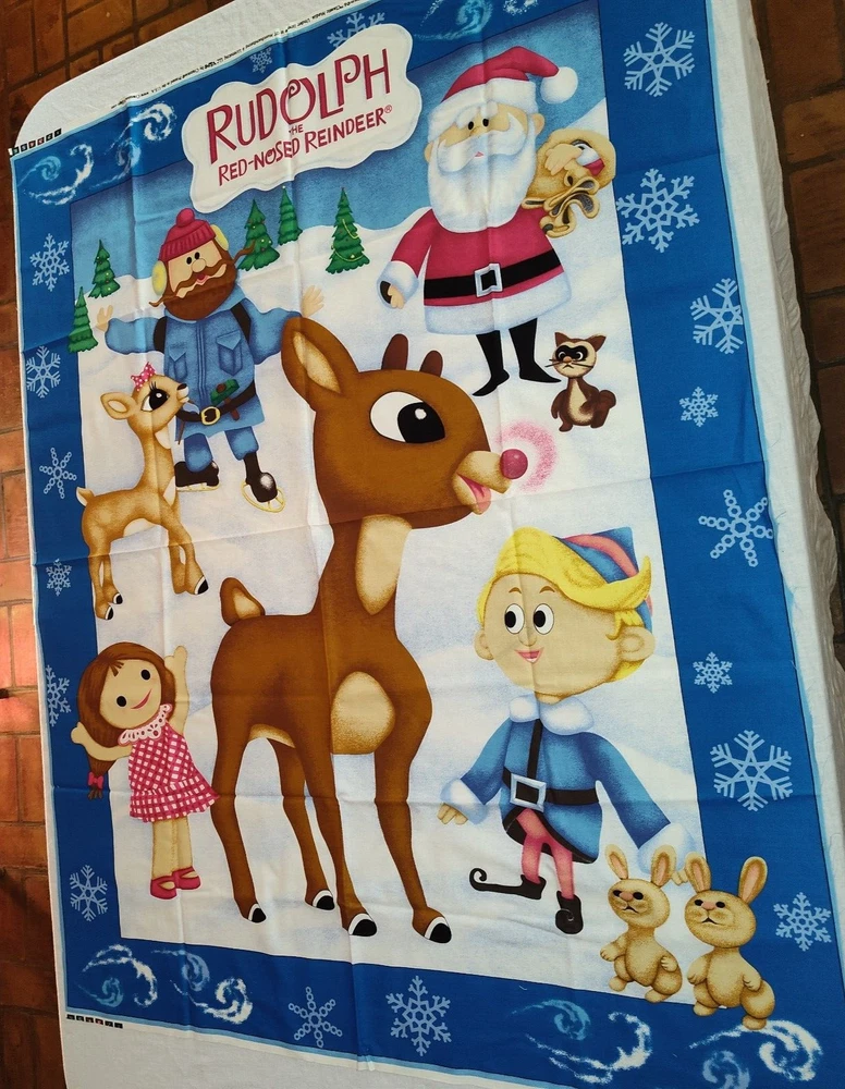 VTG Rudolph The Red-Nosed Reindeer Fabric 4 Panels Child Quilt Blanket Cranston