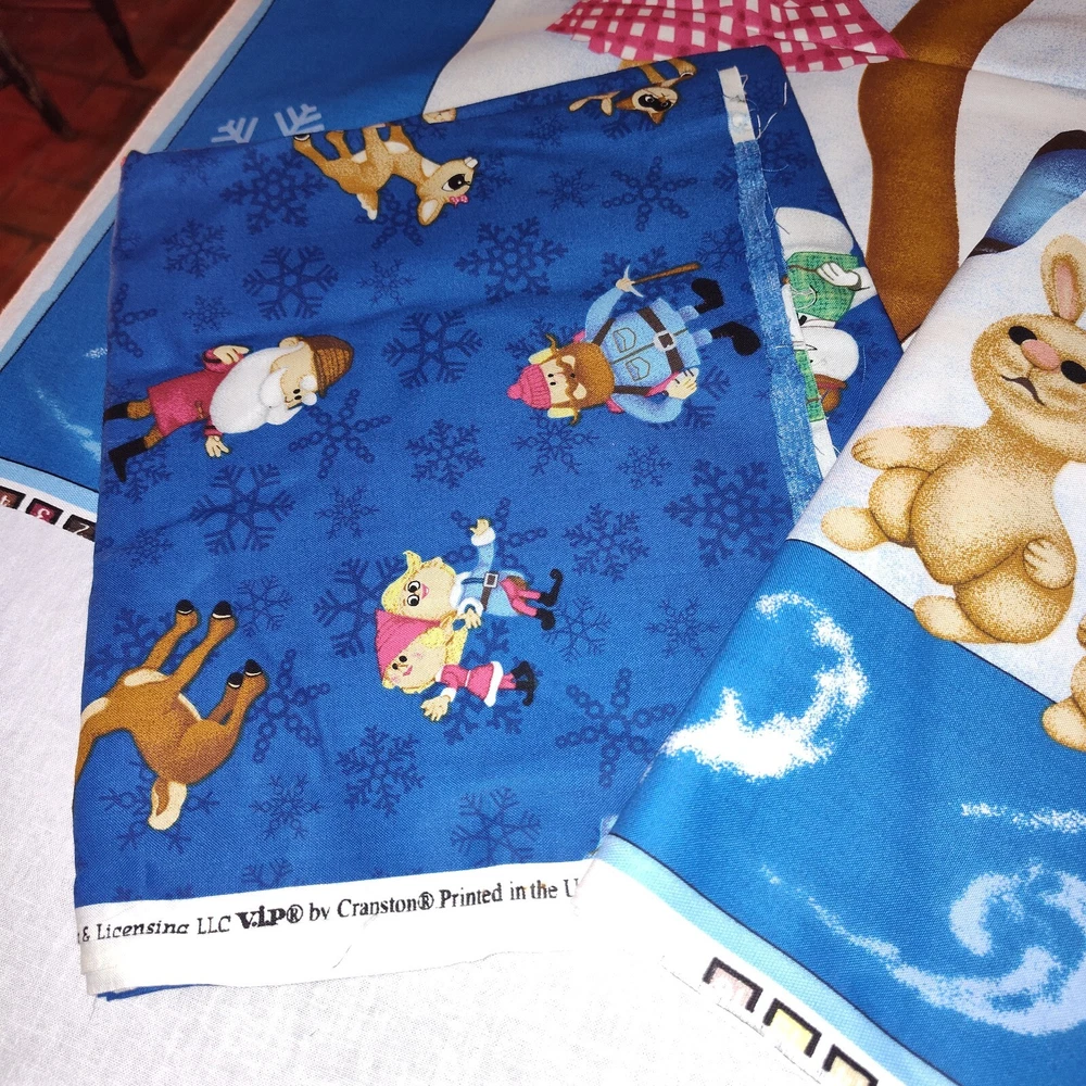 Suitable For: Bedding, Blankets/Throws, Children, Crafts, Curtains, Pillow, Quilting Pattern: Rudolph the Red nosed Reindeer Fiber Content: Cotton Features: VTG Rare Theme: Holiday/Christmas Color: Multicolor Unit of Sale: 4 panels Quilting Sizes: 45 x 35 in Square Size: Rectangle Material: Cotton Length/Amount: Panels Fabric Weight: Medium Country/Region of Manufacture: United States Brand: Cranston Handmade: No
