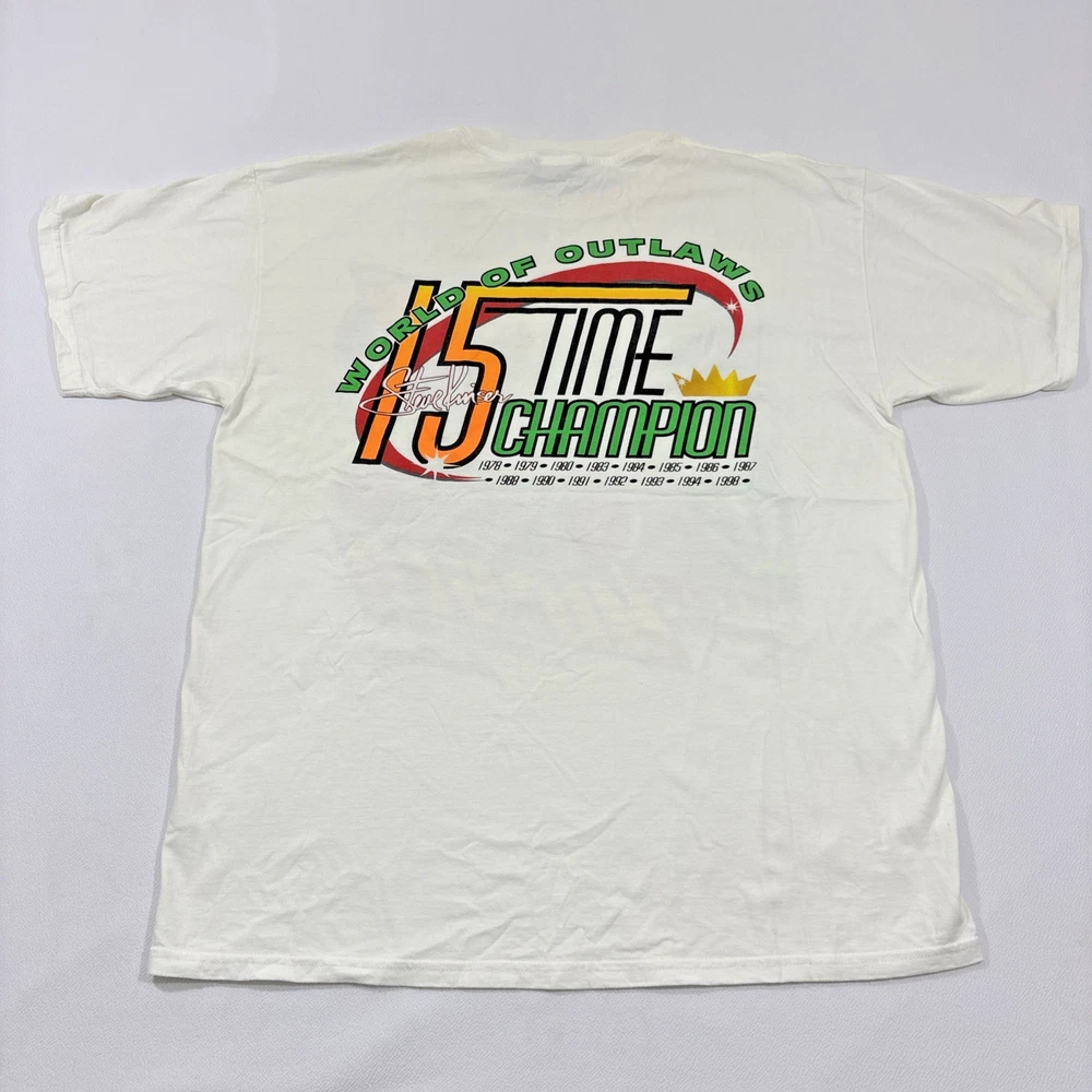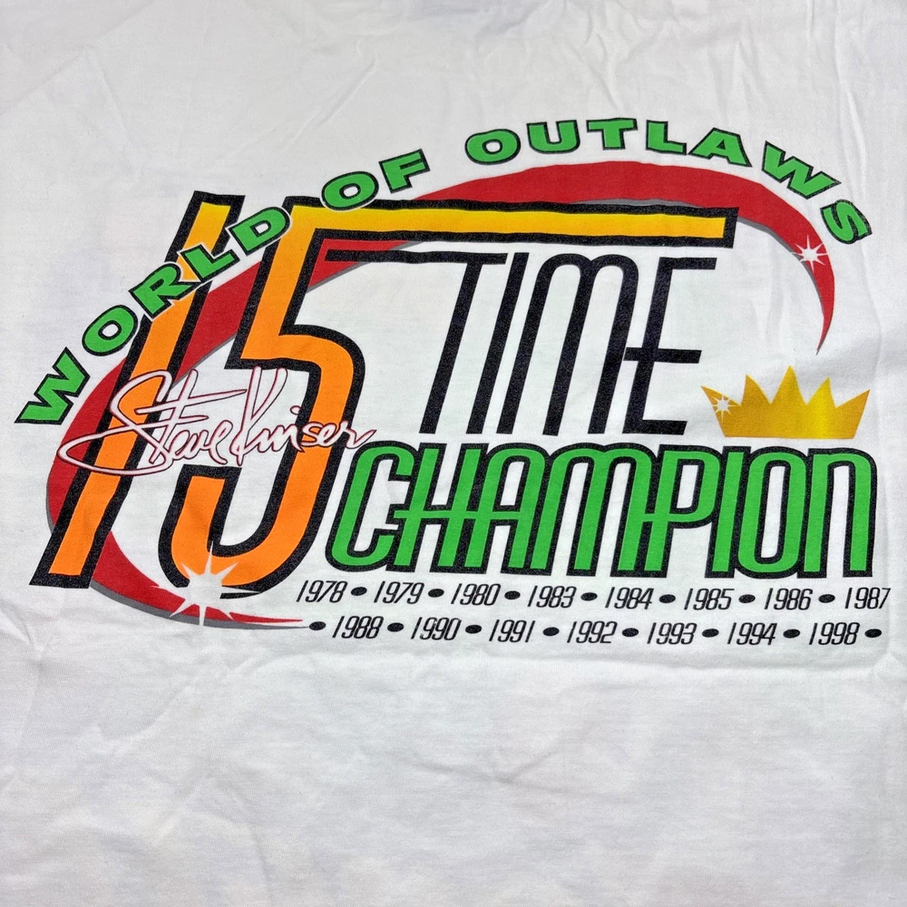 Vintage Steve Kinser 1998 Sprint Car Racing T-Shirt – Men’s XL – Double-Sided Graphic – 90s Retro Item Description This rare vintage 1998 Steve Kinser Sprint Car Racing T-shirt features bold double-sided graphics celebrating one of the greatest sprint car drivers in history. An iconic piece of 90s motorsport apparel, perfect for racing fans, collectors, or vintage streetwear lovers. Soft, comfortable cotton with classic late-90s styling. Item Details Brand: Arizona Sport Shirt Size: Men’s XL Type: Graphic T-Shirt Year: 1998 Theme: Sprint Car Racing / Steve Kinser Graphic: Double-Sided Print Era: 90s Material: 100% Cotton Color: Multicolor Graphic on Base Tee Key Features Original 1998 sprint car racing merchandise Double-sided front & back graphic print Classic 90s motorsport aesthetic Great collectible for racing fans and vintage graphic tee enthusiasts Soft, comfortable fabric with bold artwork Condition Pre-owned – Excellent condition with no major flaws or damage. Colors still vibrant. Clean and ready to wear. 📦 Fast Shipping ✅ Trusted Seller 📸 Actual photos of the item shown eBay Item Specifics Brand: Arizona / Racing Tee Size: XL Type: T-Shirt Fit: Regular Theme: Racing, Sports, 90s Character: Steve Kinser Color: Multicolor Material: Cotton Decade: 1990s Graphic Print: Yes – Front & Back Condition: Pre-owned eBay Category Men > Men's Clothing > Shirts > T-Shirts