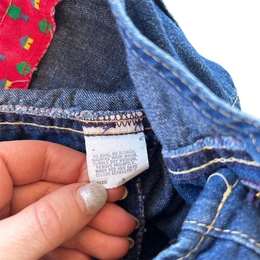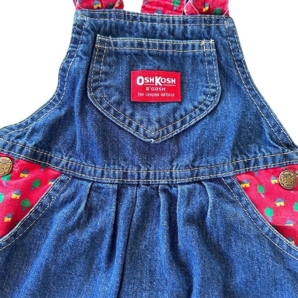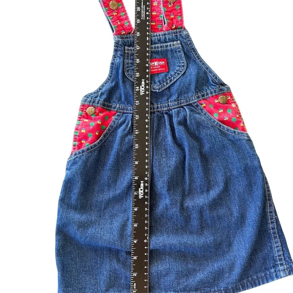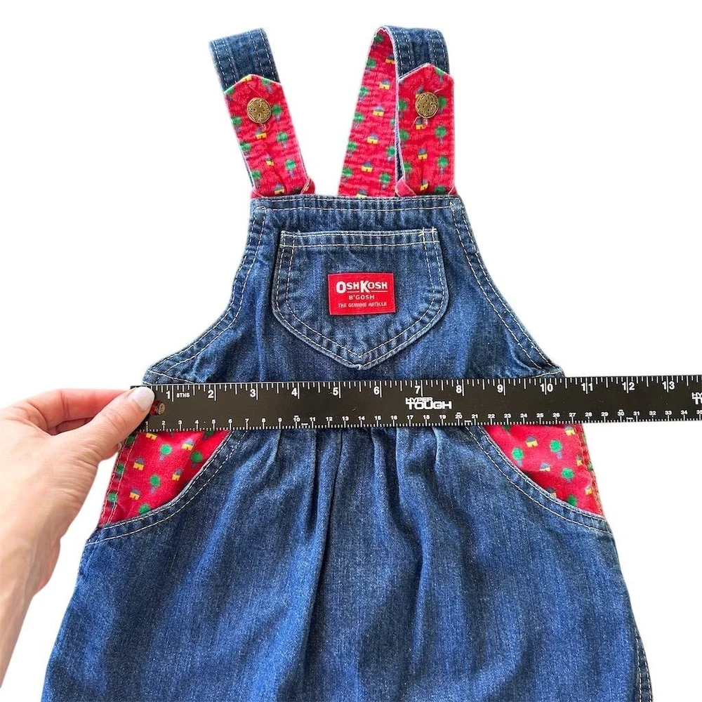 A classic OshKosh B'gosh denim overall dress with charming red straps featuring a whimsical tree print. This adorable piece offers a comfortable and playful silhouette perfect for everyday adventures. Its durable denim construction ensures it can keep up with active little ones, while the vibrant print adds a touch of fun. Ideal for park visits, playdates, or casual outings. Measurements: • Chest: 13 in • Length: 22 in • Waist: 12 in All items come from a smoke free, pet friendly home. All of items unless NWT or Dry Clean Only are washed with Tide. We try our best to disclose any flaws with items, if we miss something please reach out and let us know. We offer combined shipping on all our items. We do take measurements of our clothing listed for sale. Please compare the measurements to something you already own.