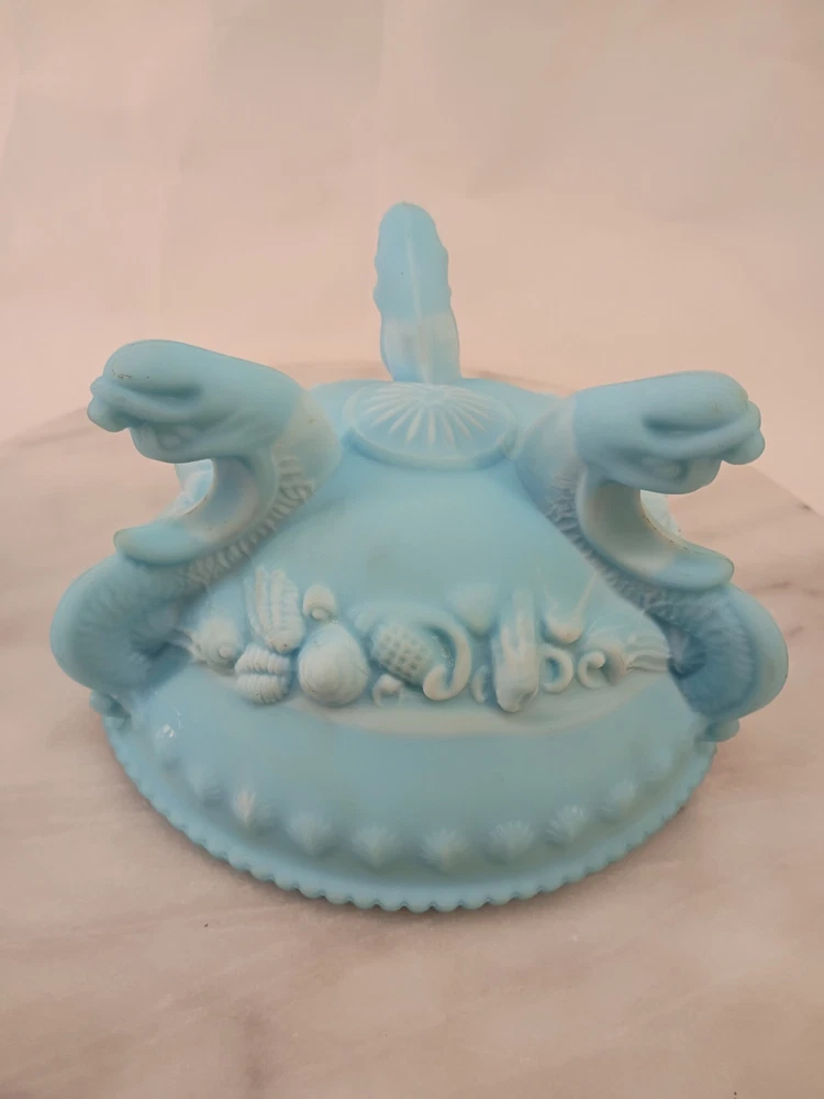 The VTG Westmoreland Frosted Blue Opaline Dragon Footed Candy/Trinket Glass Dish is a decorative collectible that exudes elegance and charm. Made by the renowned brand Westmoreland, this original piece features a stunning blue color that adds a touch of sophistication to any space. The intricate dragon feet and frosted design make it a standout item for collectors of decorative glassware. Perfect for displaying candies or trinkets, this dish is sure to be a conversation starter in any home. Thank you for visiting my listing today and thank you for your interest in this item! My goal is to have a pleasant transaction resulting in a satisfied customer. I hope any transaction between us leaves you with a feeling of confidence knowing you can trust me and the items I offer here. *Most if not all my listings are set to accept offers. Feel free to send an offer and I will be happy to consider it!! *Please contact me with any questions or concerns and I will be happy to help. *Always examine the photos carefully, and if in doubt, email me with any questions you may have. *Please note that condition statements are offered as a guide only. They will always be somewhat subjective and reflect our opinion, which may not necessarily agree with someone else's opinion. PLEASE READ: I aim to please and I want my buyers to have a positive transaction with me. If you have questions, concerns, or special requests related to any of my items I hope you will contact me so we can work them out to your satisfaction. I sell my items to give you a great item at a decent price while making a little profit at the same time. If you feel the item you are interested in is too pricey do not hesitate to send me a fair offer and I will consider it. My goal is to satisfy your needs and mine so both parties can benefit. SHIPPING: If you prefer a different shipping method or company please contact me and I will do all I can to make that happen. If you have concerns or requests about the packaging of your item contact me and I will do all I can to accommodate them. Shipping costs are based on location in each state or country, the costs always differ. After I have received your payment I will ship your item out within 3 business days or less excluding weekends and holidays. BEFORE PURCHASING & BIDDING: **Please see all the pictures. I do not have great photography skills but I try to get the most accurate photos I can. If you are unsure about something you see in a photo contact me so I can do what I am able to answer your concern about the item. **I cannot stress enough that if you have any questions or concerns please contact me before purchasing and bidding. Communication can solve so much. **As a customer myself, I understand the meaning of customer satisfaction and my goal is to have nothing but satisfied customers. If you are not unsatisfied with your purchase I ask that you please contact me so I can take care of your issue. My goal is for you to be 100% satisfied. INTERNATIONAL BUYERS WELCOMED - PLEASE NOTE: I welcome International buyers! Please be aware that any custom/duties/taxes that the parcel might incur once it is out of the USA are the responsibility of the buyer. Please check with your country's customs office to determine what these additional costs will be prior to bidding or buying. Please refer to the eBay Site Map for more information if needed.