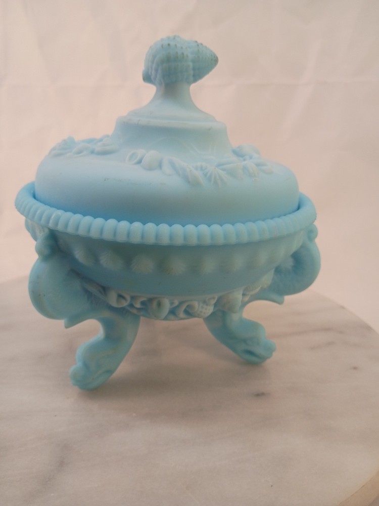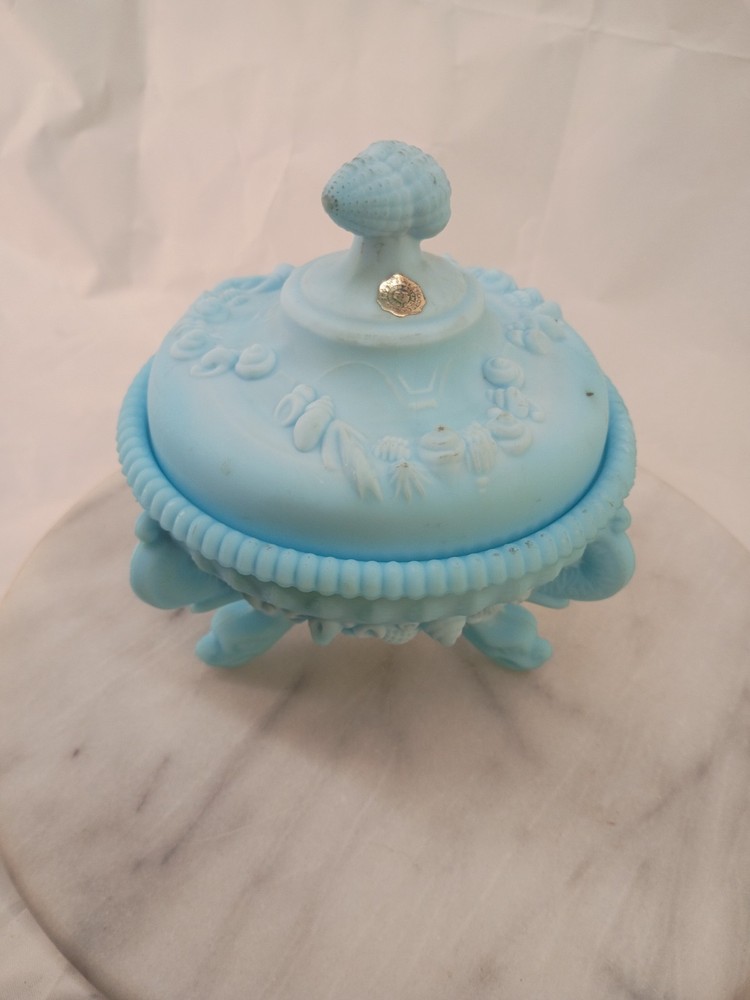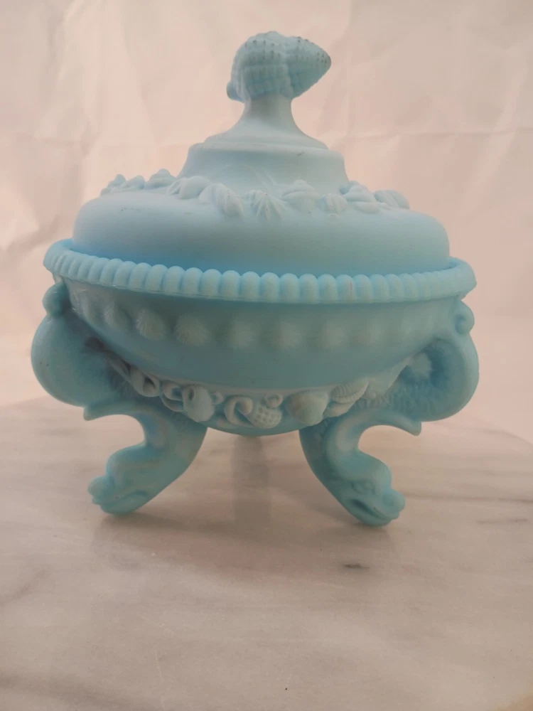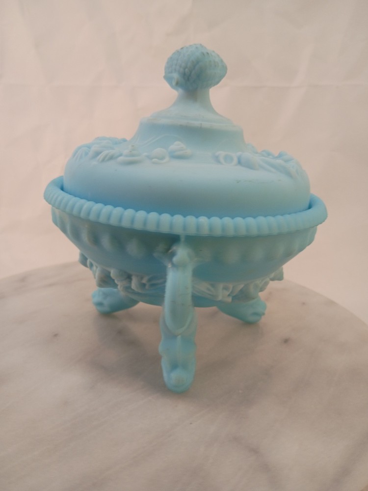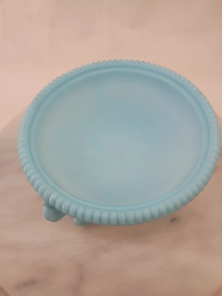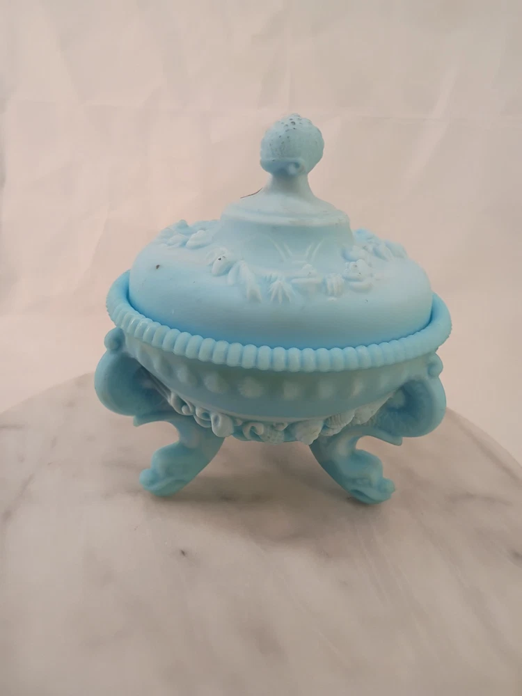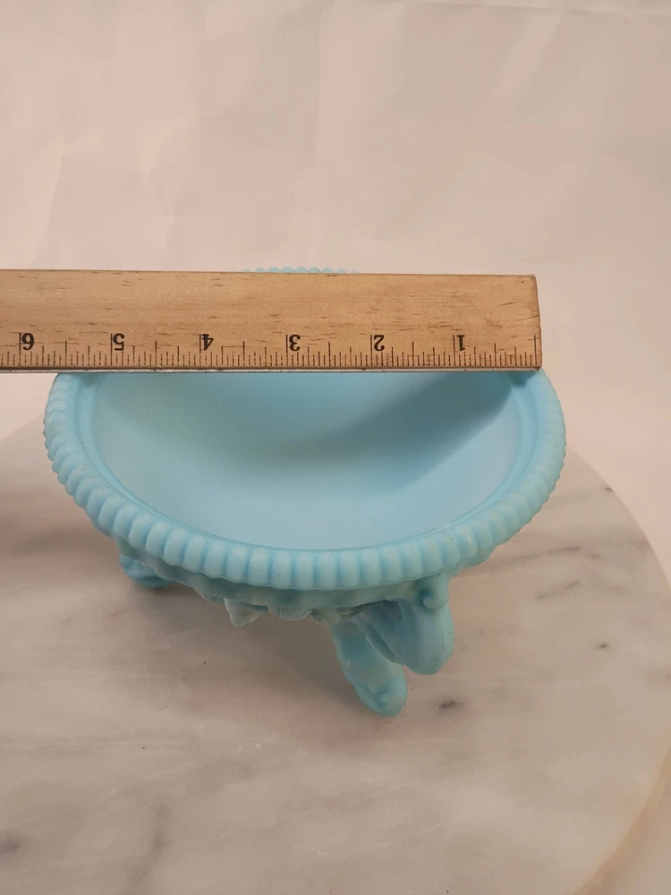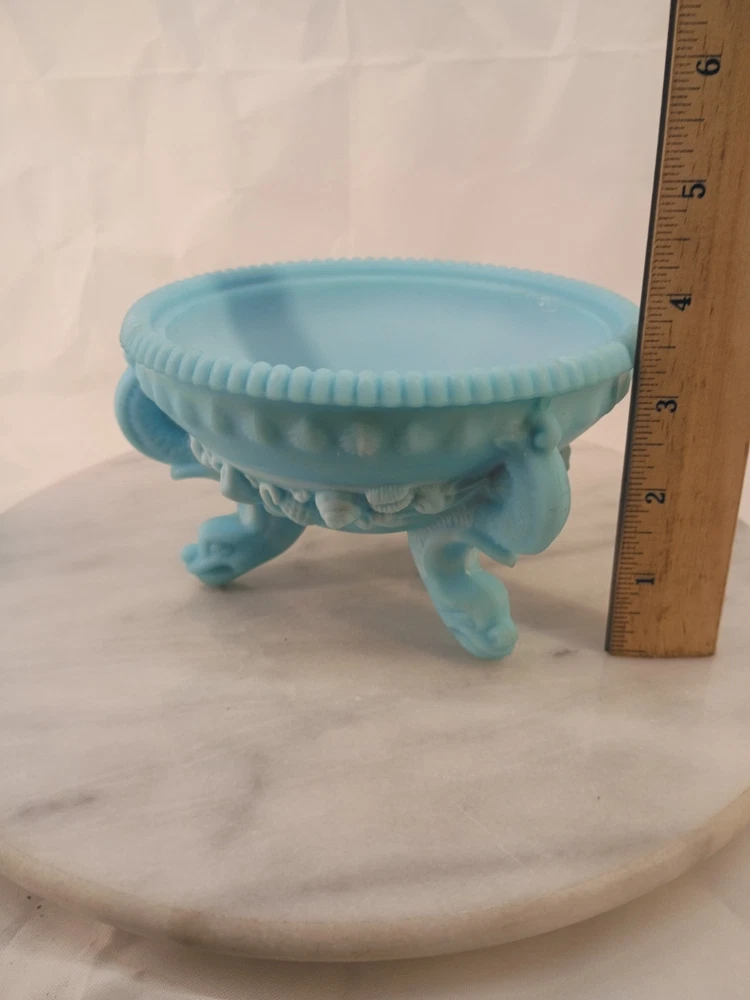 VTG Westmoreland Frosted Blue Opaline Dragon Footed Candy/Trinket Glass Dish