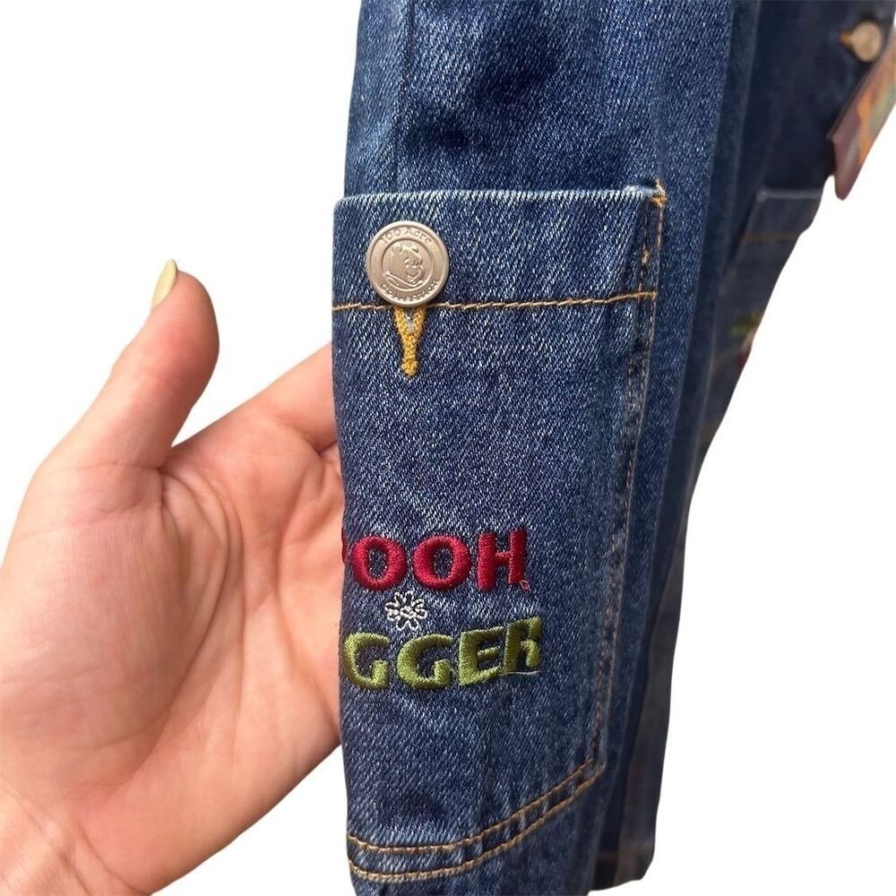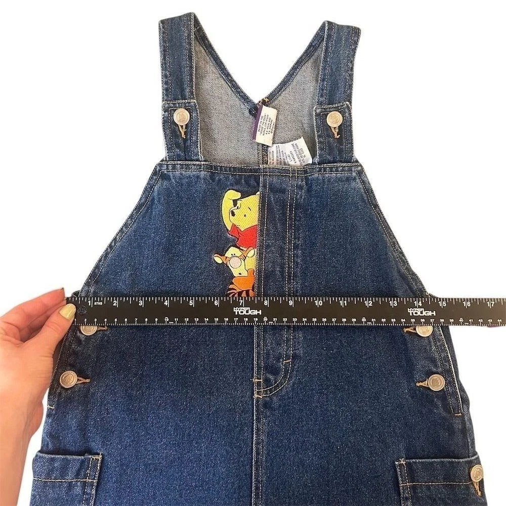 Kids denim overall dress featuring Winnie the Pooh and "Looking for Fun" embroidery. Adjustable straps and side buttons for a comfortable fit. Perfect for casual outings or playtime. Measurements: • Waist: 28 in • Length: 23 in Style: Overall Dress Dress Length: Knee Length Department: Girls Theme: Fairytale & Fantasy Character: Winnie the Pooh Sleeve Length: Sleeveless Occasion: Casual Fabric Type: Denim Season: Spring, Summer Material: 100% Cotton, Fabric Closure: Button Character Family: Disney Accents: Embroidered, Button, Logo Keywords: Winnie the Pooh, denim, overalls, dress, toddler, childrens, embroidered, cartoon, character, playtime, casual, summer, spring All items come from a smoke free, pet friendly home. All of items unless NWT or Dry Clean Only are washed with Tide. We try our best to disclose any flaws with items, if we miss something please reach out and let us know. We offer combined shipping on all our items. We do take measurements of our clothing listed for sale. Please compare the measurements to something you already own.