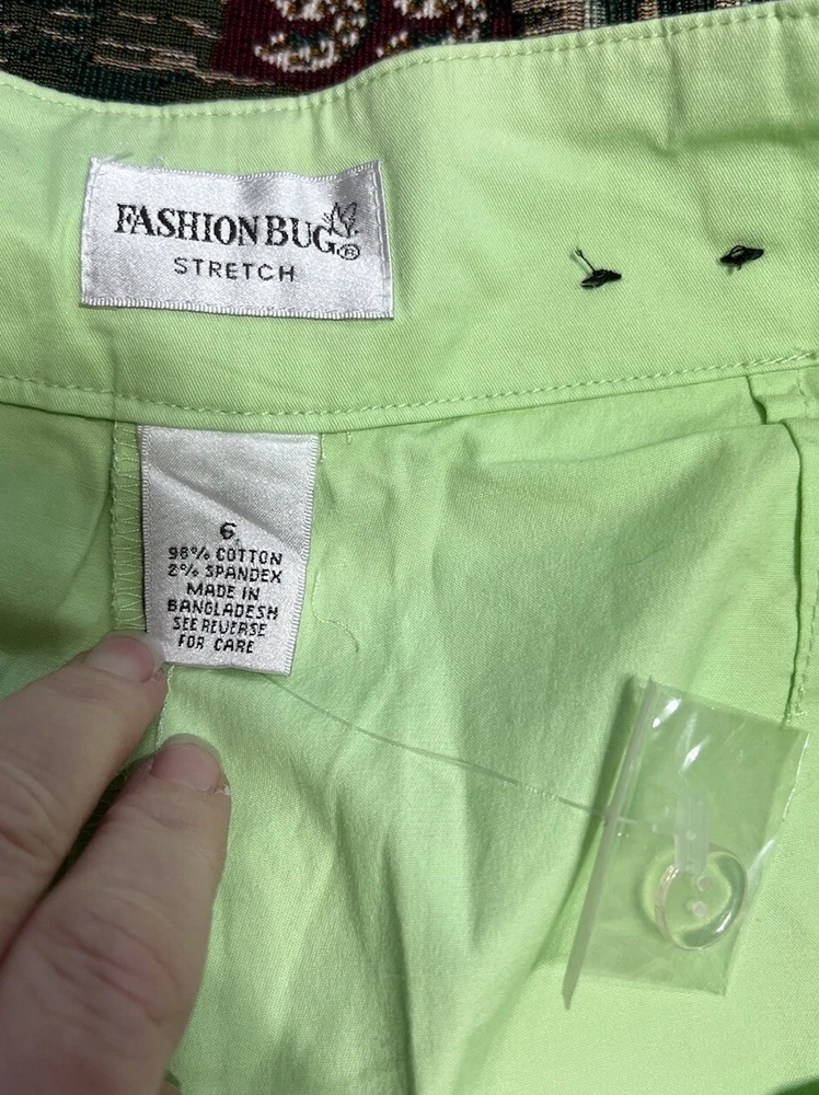 This vintage Y2K mini skirt skort in a light green color is a stylish and versatile piece for women size 6. The skirt features a pleated design with a preppy style, perfect for various occasions like golf, tennis, parties, or casual outings. Made from a stretchy knit fabric blend of spandex and cotton, this mini skirt has a mid-rise and button closure. It also has a touch of 2000s and school girl aesthetic, making it a fun addition to any wardrobe. New without tags!