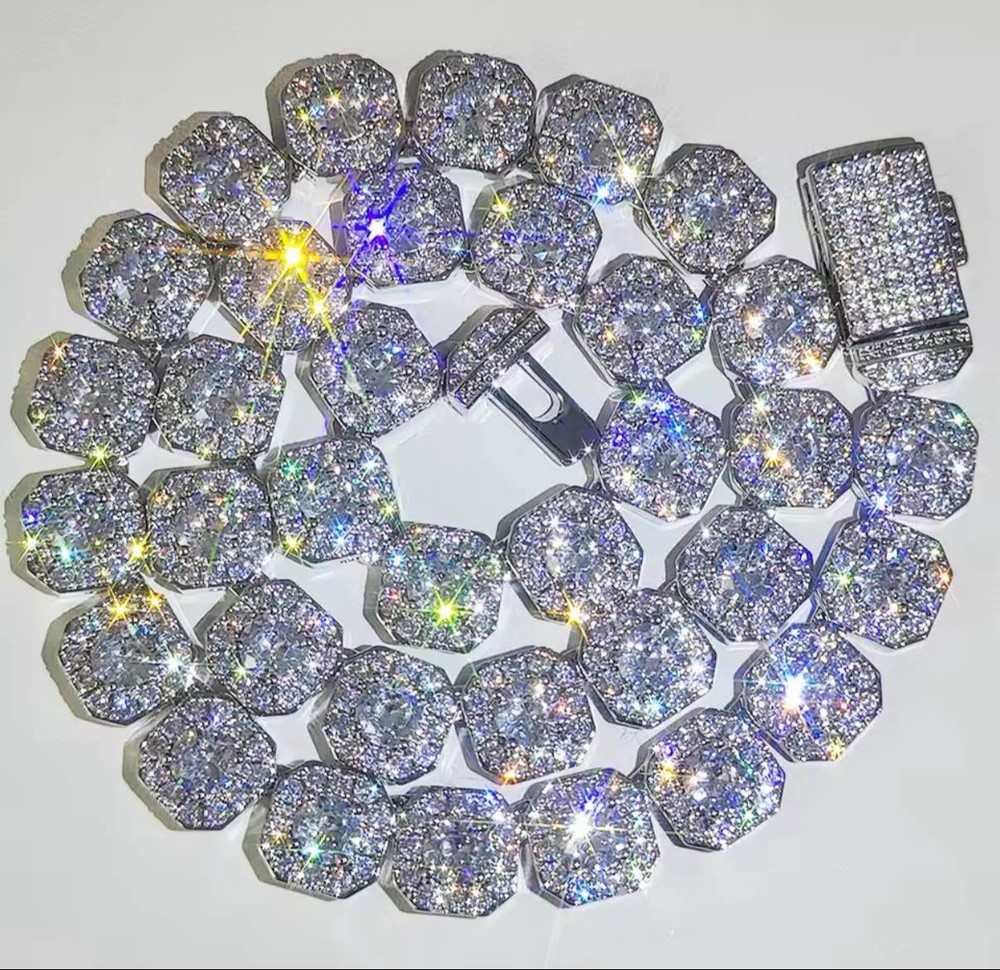 The VVS Moissanite Baguette Tennis Chain is a stunning 22-inch necklace crafted with sterling silver and featuring dazzling white Moissanite stones. This stylish piece is perfect for special occasions like anniversaries and birthdays, and its hip hop theme adds a trendy and unique touch. With a prong setting and excellent cut grade, this handmade necklace is sure to make a statement with its very, very slightly included (VVS1) diamond clarity grade and D diamond color grade. Perfect for men looking to showcase their impeccable style.