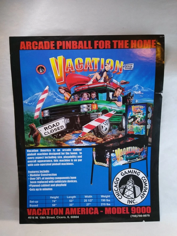 Vacation America Pinball Flyer Home Ed Original Chicago Gaming Vintage Original Original 2002 home model promo sales flyer. Single page one sided sheet. Has tears, wrinkles, creases, and age wear. Flyers are perfect for framing and make great wall art. A flyer is an paper promotional advertising art print sheet made for coin operated amusement arcade games. Also called a circular, brochure, pamphlet, or flier. Size is 8.5" X 11". Plastic protector included with each flyer sold. More pinball, jukebox, slot machine, and vintage arcade game items for sale in our store. SHIPPING Bundle and save by using cart and making single payment. International buyers are responsible for any import fees/taxes. ABOUT US Seller of vintage retro collectibles, pop culture, paper ephemera, new old stock advertising, artwork, original pinball flyers, vinyl records, Mr. Peanut, video arcade flyers, pinball machine parts, game manuals, pinball promo plastics, Mad magazines, antique Halloween and holiday postcards, Christmas items, super hero memorabilia, horror themed art, gifts.