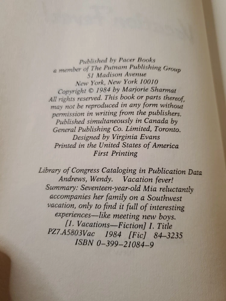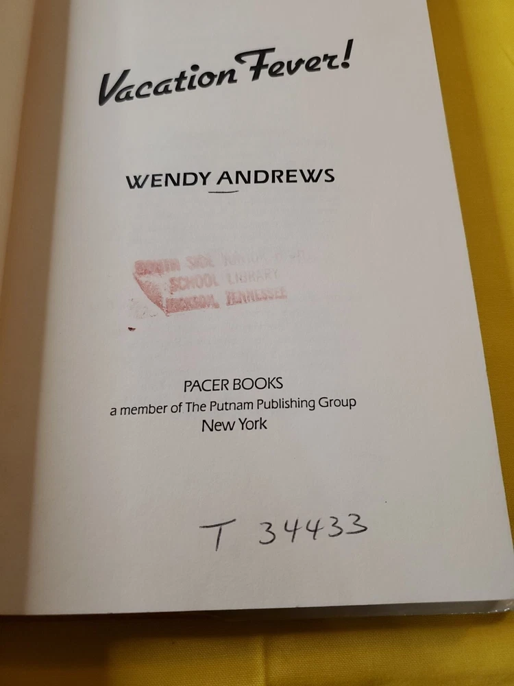 Number of Pages: 160 Pages Binding: Library Book Title: Vacation Fever! Topic: General Author: Wendy Andrews Language: English ISBN: 9780399210839 Publication Year: 1984 Book Series: Wendy Weight: 1 lbs Genre: Juvenile Fiction Product Group: Book Format: Other gtin13: 9780399210839 IsTextBook: No Vintage: Yes Publisher: Penguin Publishing Group
