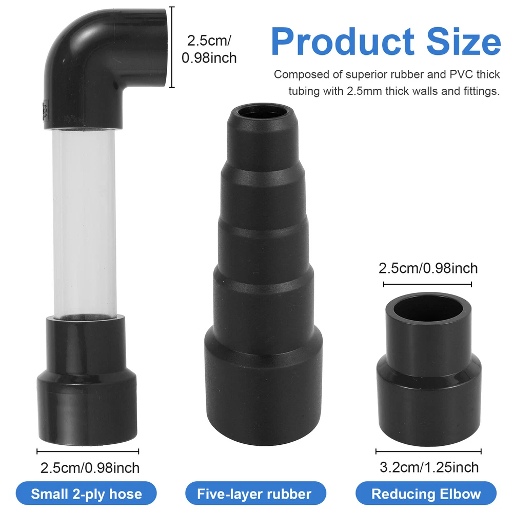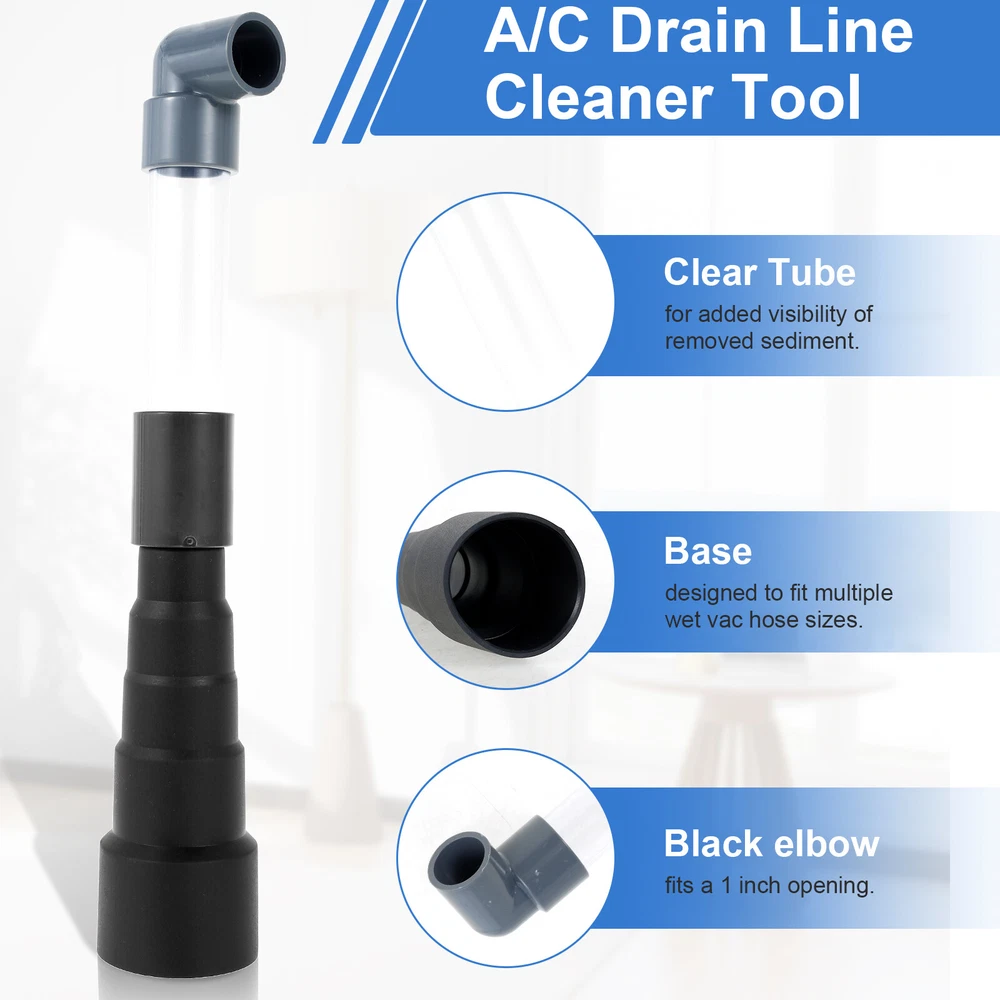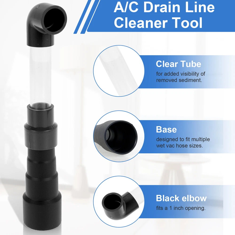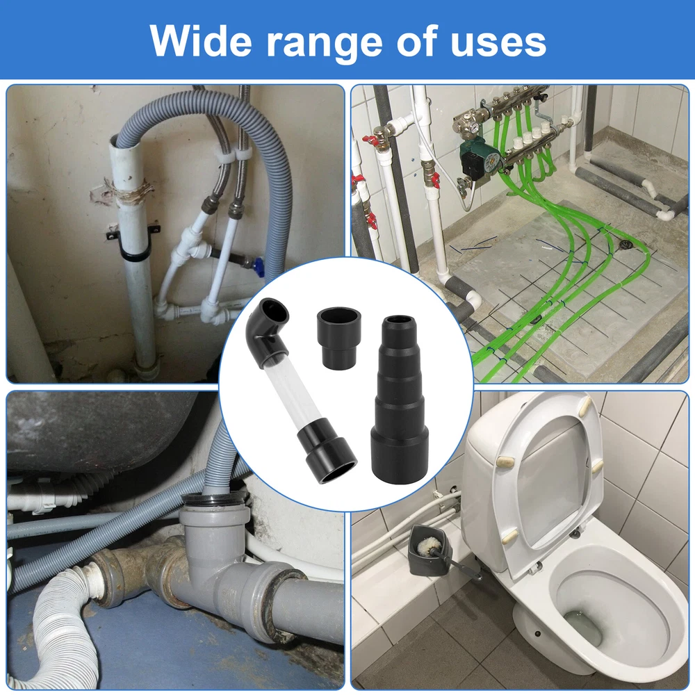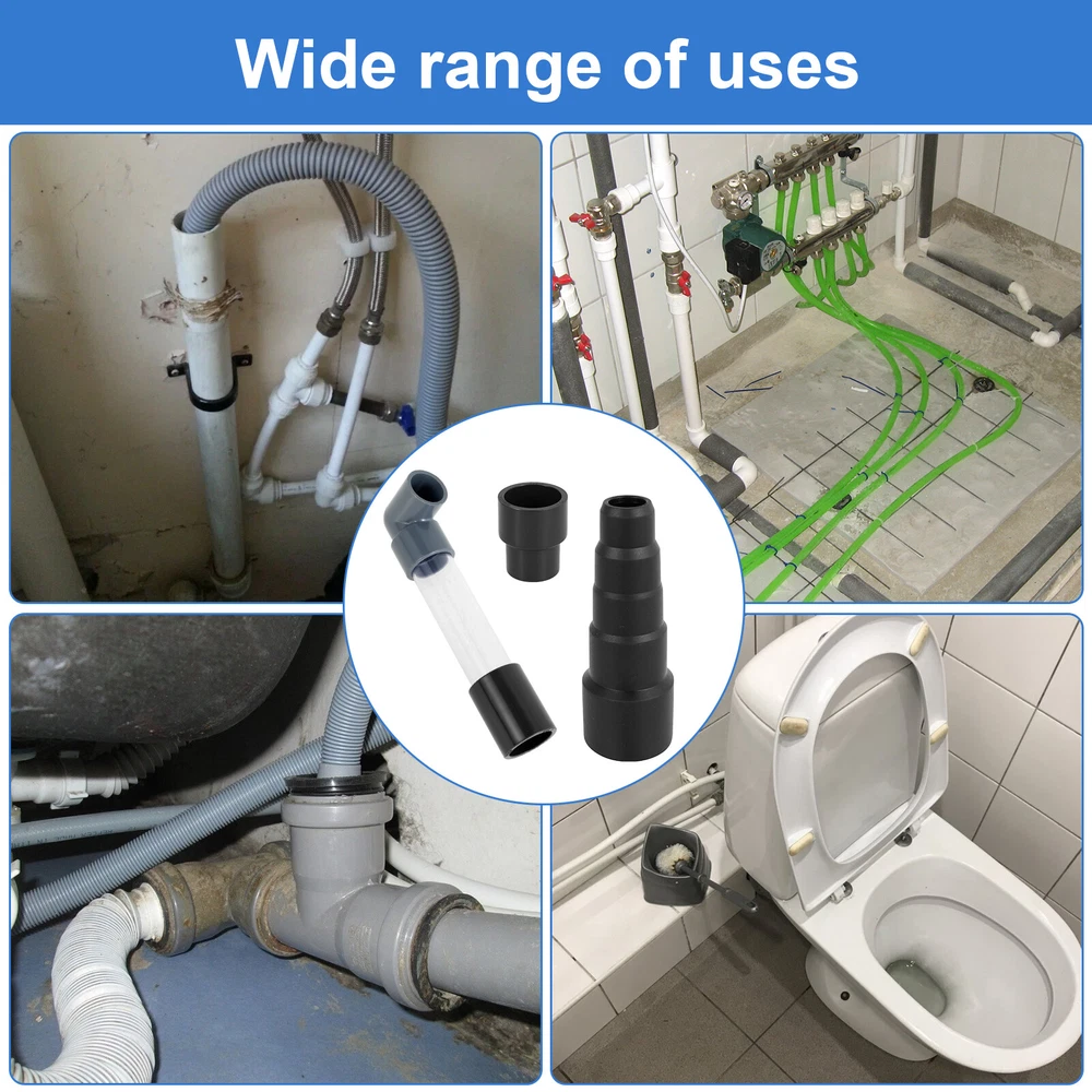 Parts List: 1×Hose 1×Reducer Elbow 1×Five Layer Rubber OR 1×Small Two Layer Hose 1×Reducer Elbow 1×Five Layer Rubber Highlight description: Purpose: Designed to connect vacuum hose and drain pipe for cleaning air conditioner condensate drain pipe. It can quickly connect pipes, no need to manually clean air conditioner pipes, effectively solve pipe cleaning problems Good Sealing: Connect the tool end of the cleaner to the wet vacuum cleaner and turn on the wet vacuum cleaner to ensure a good seal and fit. No need to use your hands to form a seal between the vacuum hose and PVC pipe Visible Transparent Tube: The visible transparent tube is designed to see how it works and whether the inside of the pipe is clean. The visible transparent tube with a diameter of 3/4 inch provides greater flow and suction to ensure a clean and neat finish Size Details: Equipped with 2 types of connectors, including 3/4 inch inner diameter connector and 1 inch inner diameter connector. The connector adaptability range: 0.78-1.96 inch (20-50 mm in diameter), for pipes and vacuum cleaner connectors of different sizes Widely Uses: Made of PVC thick tube and rubber, the pipe wall is made of 2.5 mm thick pipe and connector, enduring and not easy to break. Suitable for various daily pipes, such as HVAC pipes, air conditioning pipes, and water pipe blockages Detailed description: Description: This vacuum hose to PVC pipe adapter is designed for connecting vacuum hoses and drain pipes. It is made of rubber and PVC material, which is not easy to deform, tear or break. It is equipped with 2 types of connector that can be disassembled and connected in sections. Feature: Good Performance: The connector is tightly connected and not easy to loosen, and the performance is long lasting and reliable. The detachable segmented design can connect pipes of different sizes. Practical Tool: It is an indispensable tool for cleaning the air conditioner condensate discharge pipe. Do not mix with ordinary household vacuum cleaners. The air conditioner drain pipe cleaning tool can only be used with a wet vacuum cleaner (which can absorb water). Specification: Product Name: Vacuum Hose to PVC Pipe Adapter Material: PVC+Rubber Color: Black Size: As Shown Style (Optional): Reducer Elbow, Two Layer Elbow Notes: 1.There may be slight differences between the picture and the actual color of the commodity. We will try our best to show you the exact color. 2.Please allow slight dimension difference due to manual measurement.