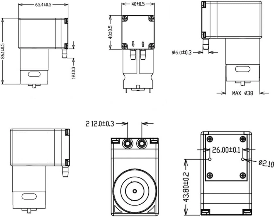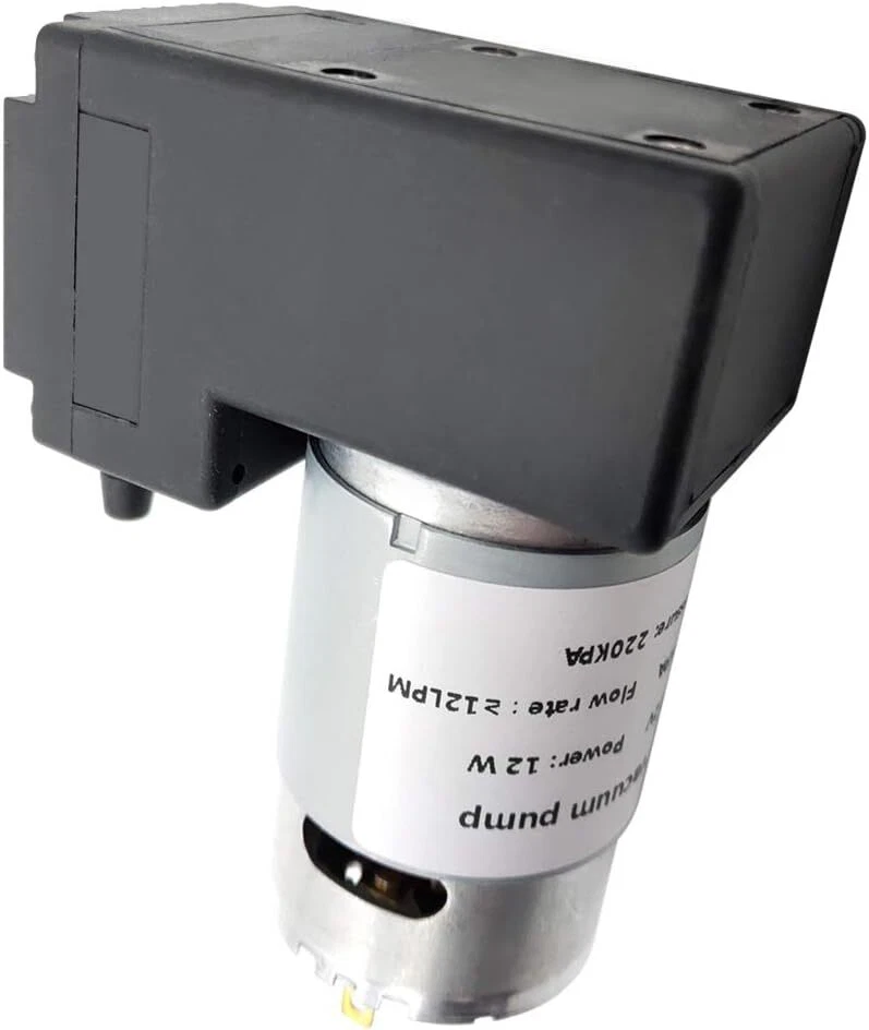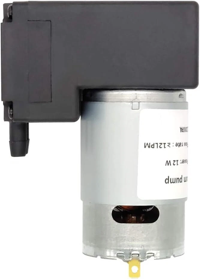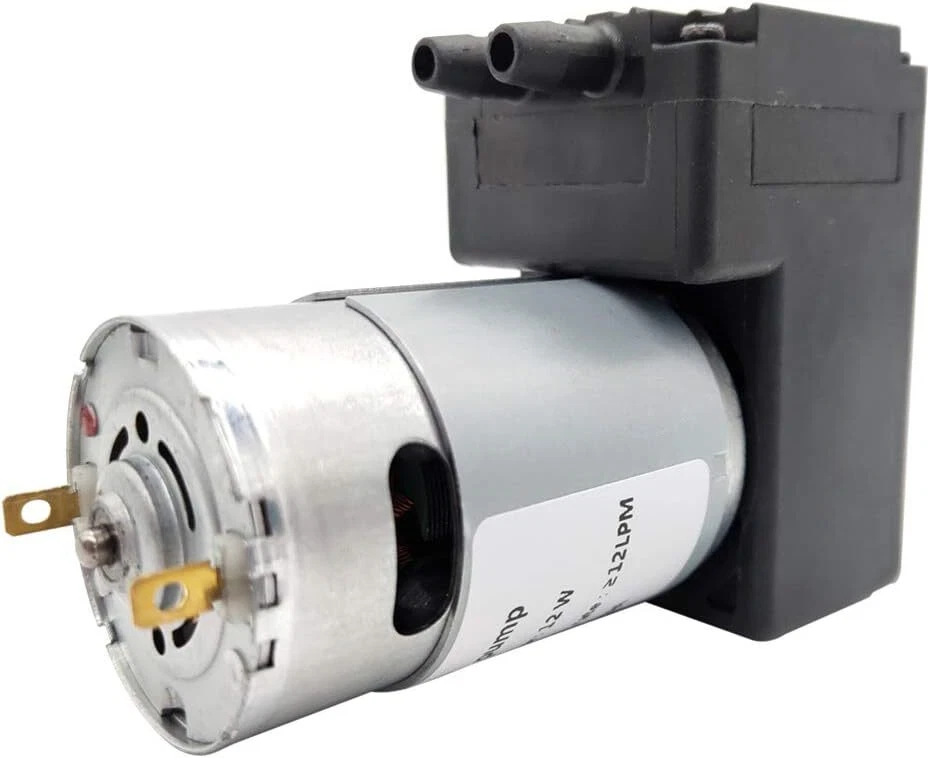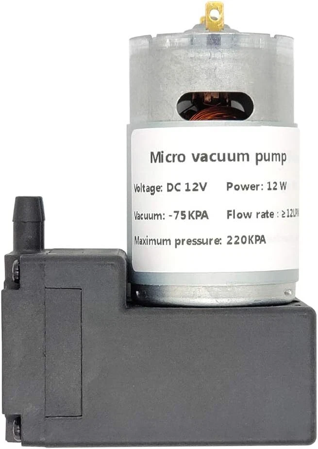 Vacuum pump DC 12V 12W, micro diaphragm pump air compressor -75KPA vacuum degree 12LPM flow Product Details Brand: NC Material: Silicone Style: Diaphragm Power Source: Corded Electric Item Weight: 13 Ounces Maximum Flow Rate: 12 Liters Per Minute Voltage: 12 Volts Manufacturer: N\C Item Weight: 13 ounces Product Dimensions: 3.39 x 1.57 x 2.6 inches Maximum Power: 12 Watts Air Flow Capacity: 12 LPM Sound Level: 60 dB Hose Length: 1 Meters Included Components: 1m silicone tube Batteries Included?: No Batteries Required?: No Brand: NC Material: Silicone Style: Diaphragm Power Source: Corded Electric Item Weight: 13 Ounces Maximum Flow Rate: 12 Liters Per Minute Voltage: 12 Volts Manufacturer: N\C DC12V motor 12W power Flow ≥12LPM, noise < 60DB Vacuum degree>-75KPA (-562mmHG), maximum pressure 220KPA High efficiency, low noise, long service life, high and low temperature resistance, liquid or air pumpable With 1m silicone tube Features: The vacuum pump has high efficiency, low noise, low vibration, long service life and temperature resistance, can pump gas or liquid, has good cycle stability, and can operate continuously for 24 hours. The pump has sufficient suction power and is suitable for most DIY projects or vacuum adsorption automation equipment. specification: Rated voltage: 12V. Vacuum degree: -75KPA. Maximum pressure: 220KPA. Rated power: 12W. Working noise: 60DB. Air flow: ≥12LPM. Entrance and exit diameter: 6mm. Size: 86x 66x 40mm. Life: 24-hour continuous operation life is 800H, if intermittent life will be extended. package includes: 1x Microvacuum pump. 1x 1m silicone tube.