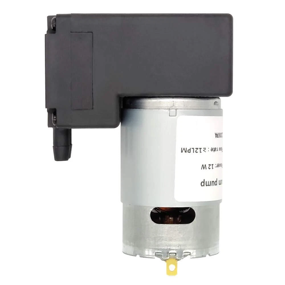 Features: The vacuum pump has high efficiency, low noise, low vibration, long service life and temperature resistance, can pump gas or liquid, has good cycle stability, and can operate continuously for 24 hours. The pump has sufficient suction power and is suitable for most DIY projects or vacuum adsorption automation equipment. specification: Rated voltage: 12V. Vacuum degree: -75KPA. Maximum pressure: 220KPA. Rated power: 12W. Working noise: 60DB. Air flow: ≥12LPM. Entrance and exit diameter: 6mm. Size: 86x 66x 40mm. Life: 24-hour continuous operation life is 800H, if intermittent life will be extended. package includes: 1x Microvacuum pump. 1x 1m silicone tube. DC12V motor 12W power Flow ≥12LPM, noise < 60DB Vacuum degree>-75KPA (-562mmHG), maximum pressure 220KPA High efficiency, low noise, long service life, high and low temperature resistance, liquid or air pumpable With 1m silicone tube