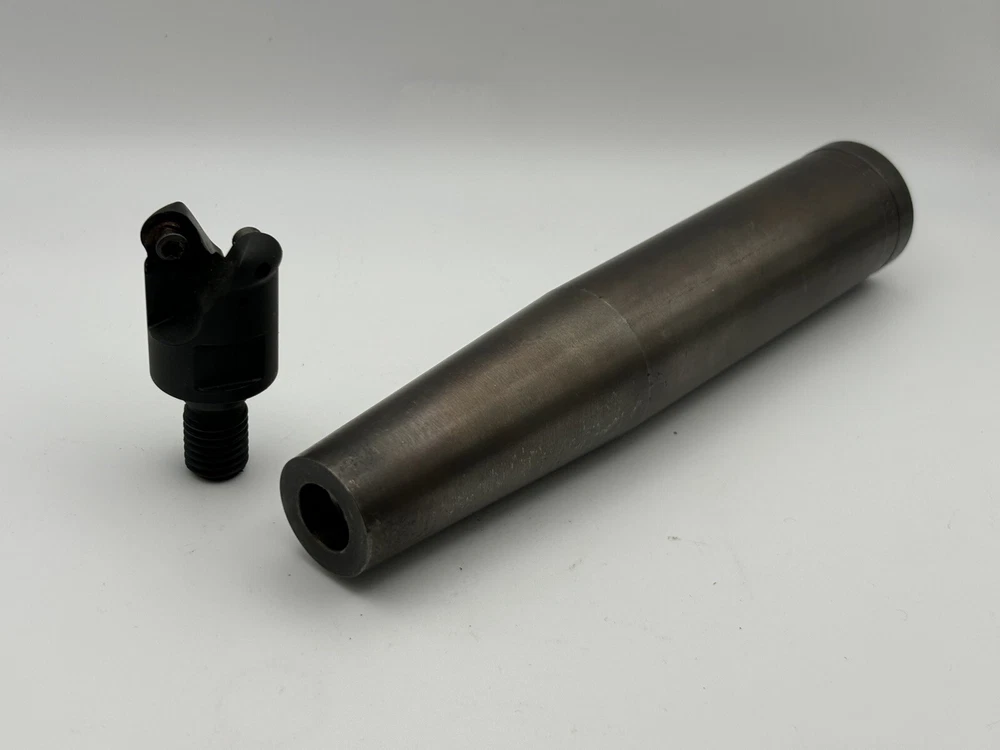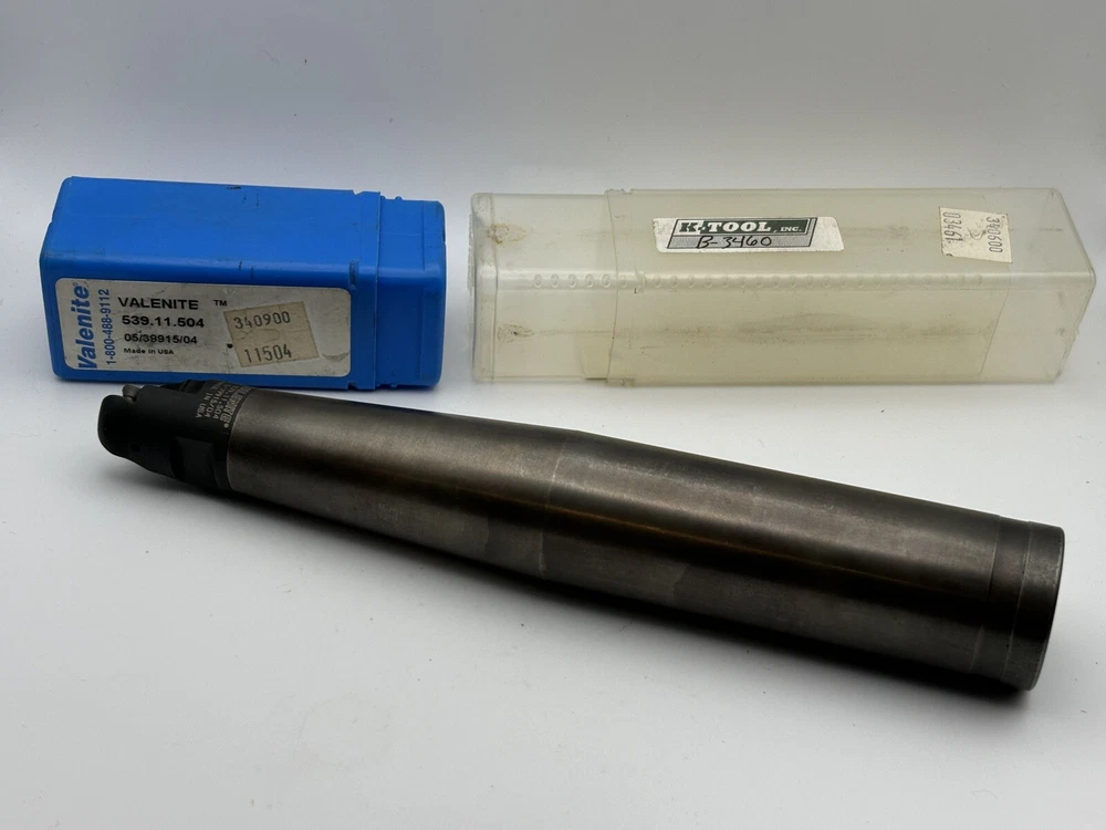 Valenite 1" M100 Copy Mill Screw on Indexable Cutter w/h 6-1/2" Extension (Box is open, but cutter is unused) Factory New Milling head part # 539.11.504 K-Tool shank part # B3460 Here is a great set up if you need the reach and rigidity. Cutter is 1" diameter. 1-1/4" head length. Thread diameter .465. The shank is made by K-Tool. It is a 1-1/4" shank, 6-1/2" OAL, with a tapered neck 2-3/4" of usable length. These shanks are very heavy duty. They feel like a heavy metal alloy. It uses the RDHT 1204 button inserts which are readily available. I'll be adding more items every day as I continue to change over to the tooling industry. Offers are always welcome, and I will combine shipping on multiple items. Payment Information We try to ship all orders within 24 hours. We kindly appreciate payment within that time frame if possible. If other arrangements are needed, please contact us. We are easy to work with. If payment is not received within 3 days or you haven't contacted us for other arrangements, an unpaid item case is opened automatically. Shipping Information Orders under 16 ounces will ship by first class mail. Orders over 16 ounces will ship by flat rate priority whenever possible. We do combine shipping on multi-item orders. Please wait for an invoice. If we are unable to use an invoice, we will refund the unused shipping back to you. Return Policy We have a 100% return guarantee on all items except as described below. If a lot was clearly described as for parts non-working, we will not accept returns. All items must be returned in original packaging and in the same condition they were shipped in. If you've ground on, filed, sanded, polished, altered etc.. we will not accept the return. Feedback We work hard to keep our customers happy. If there is ever an issue, please contact us before leaving negative feedback. We are easy to work with and will rectify the issue quickly.