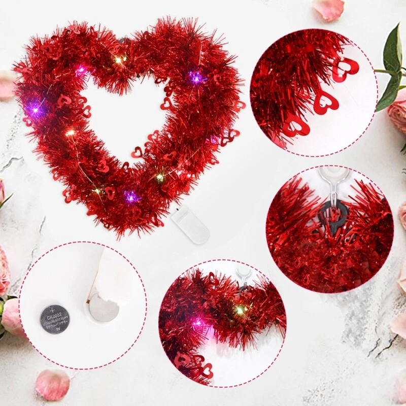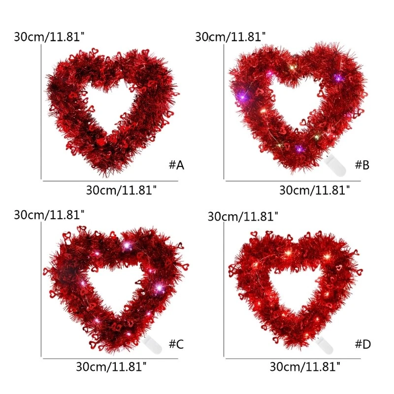 Features: There is small-ring on the top for easy hangings. Red foils heart-shaped decorations, bright and beautiful, is great choice Day party decorations. The heart-shaped wreath is great for display in front door, wall, window, wedding, classrooms, storefronts or offices. Beautiful heart-shaped garlands is decorations Day parties, wedding, birthdays and bridal parties. Warm reminder: DIY-winding is required for with light string after receiving good, please pay attention to the order! Specifications: PET Without Lamp Wreath/ Colorful Lamp Wreath/ Cold White Lamp Wreath/ Warm Yellow Lamp Wreath Size: Approx. 30x30cm/11.81x11.81inch Package Includes: 1x Door Wreath note: Please allow 1-2cm errors due to manual measurement, make sure that you do not mind before you order. Due to the difference between different monitors, the picture may not reflect the actual color of the item.