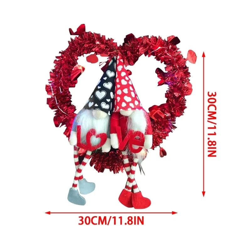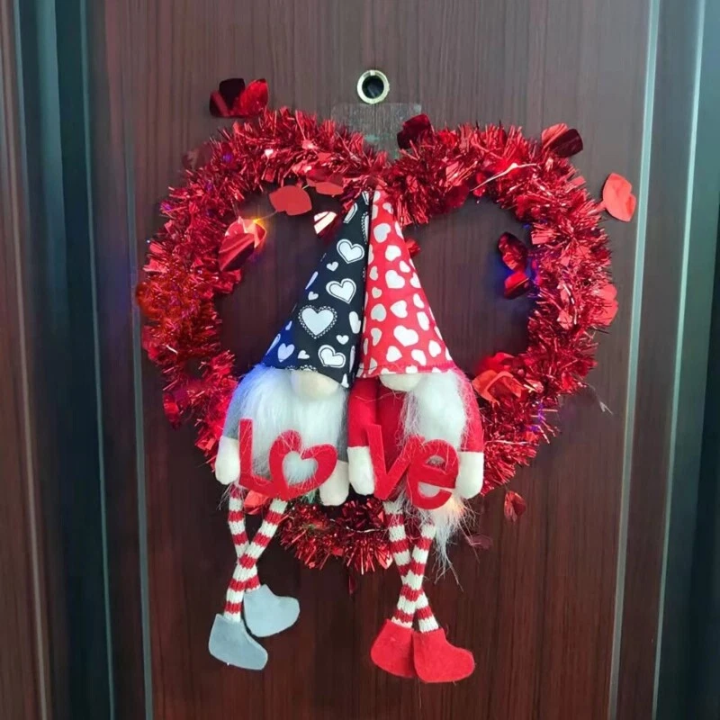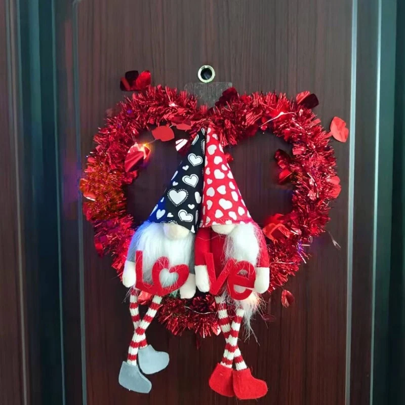 Feature: Embellishment with gnome and heart shape, which will make you impressed with the front door wreath. for Creative accented with rich Valentine's Day will bring a different Festive focal point, this beautiful styling door wreath could be use during Valentine's Day, spring to add a holiday-themed accents, bring holiday cheer throughout your home. It can be used as both indoor and outdoor with its water-proof and for sun features, you may display this decorative wreath outside all day long without worry about changing weather conditions like rain, wind, sunshine. This wall wreath will sustain its bright colors and appearance for years. Specifications: Oxford Cloth Size: approx.30x30cm/11.81x11.81in Color: As pictures shown Power Supply: Button (included) Quantity: 1 Pc Note: Please allow 0-1cm error due to manual measurement. pls make sure you do not mind before you bid. Due to the difference between different monitors, the picture may not reflect the actual color of the item. Thank you! Package Includes: 1 x Hanging Wreath (other accessories in the picture is not included!)
