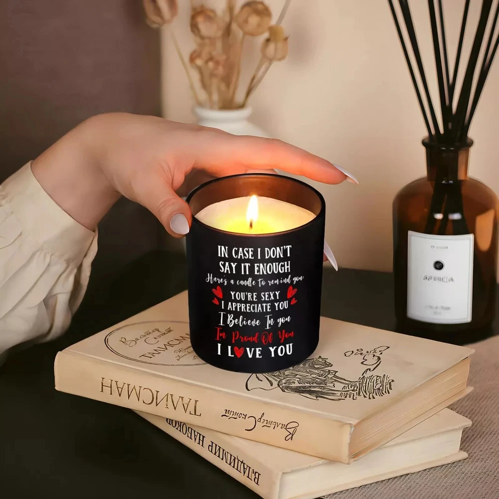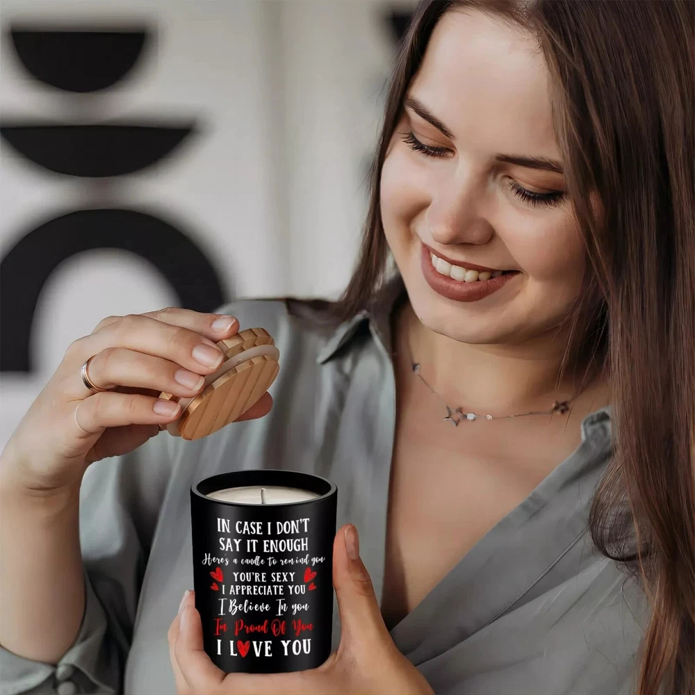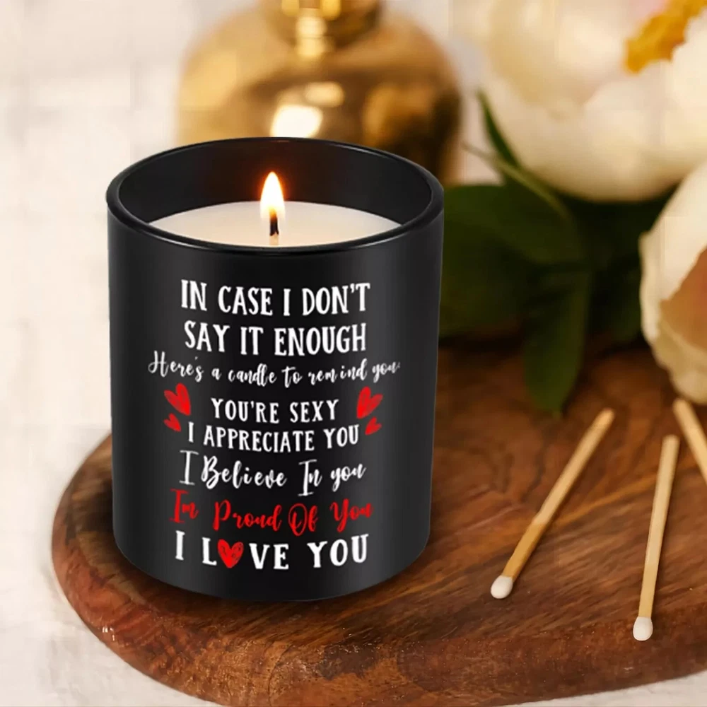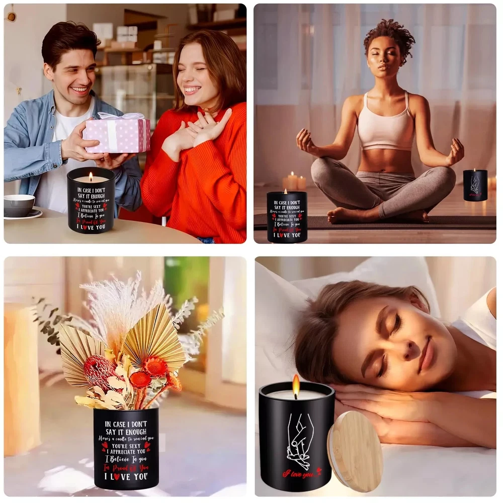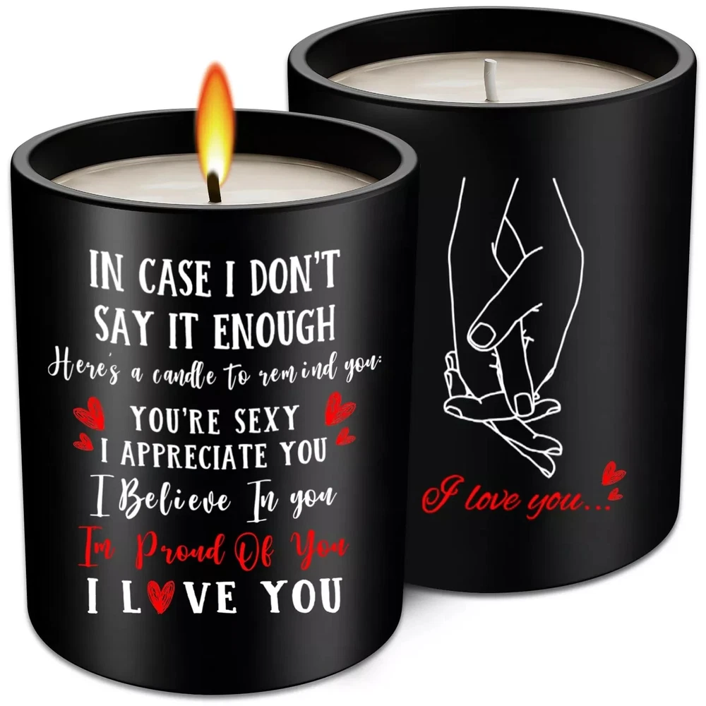 Show your love and create a warm ambiance with the Valentines Day Gift Candle, a romantic present for that special someone. Crafted by Ecocomfy, this medium-sized, round candle is designed to infuse your space with a delightful vanilla scent, perfect for indoor use. The battery-operated feature ensures easy enjoyment without the hassle of matches or a flame. The candle's dimensions are 4.41x4.29x4.25 Inches, with a convenient size of 2x2 inches, ensuring a snug fit in any room. It weighs 1.28 pounds and is made from durable plastic, promising longevity and consistent fragrance diffusion. This unbranded, scented candle is a simple yet thoughtful gesture to cherish your relationship. About this item ROMANTIC COUPLES GIFTS - Liven up your relationship with your loved ones with our stunning couple candle gifts. It will be a surprise to give this romantic birthday gift and show your love for your loved ones! Moreover, these are also Christmas, Valentine, Mother, Anniversary, birthday gifts for couples to symbolize their love. WIFE, GIRLFRIEND, HUSBAND, BOYFRIEND BIRTHDAY GIFTS OR ON ANY OCCASION: The special one in your life will undoubtedly be filled with joy and happiness. A bright, heartwarming smile will illuminate their face as they open it, their eyes sparkling with anticipation and excitement. Used for wife husband birthday gift, birthday gifts for girlfriend boyfriend, birthday gifts for him her, ... UNIQUE ANNIVERSARY GIFTS - Look no further than our vanilla candle, whether you are looking for anniversary, valentines day gifts for husband and wife or an couple gift with a sentimental message. Ideal gift for boyfriend, husband, romantic I love you gifts for her, or even a date night gift for couples. BIRTHDAY GIFT IDEAS - These stunning candles make ideal gifts for couples, men, women, suitable for any occasion you want to spread your love. A simple warm and heartfelt candle girlfriend ideas gifts suitable for anniversary, birthday, valentine's day, Mother's Day, thanksgiving, Christmas, wedding, thank you gifts, holiday. ECO-FRIENDLY And REUSABLE - The candle is handmade with high quality natural soy wax and Lemongrass fragrance oils. Our soy wax burns nice and clean and Eco-friendly that perfect for aromatherapy, meditation, yoga, etc. Wax can easily be cleaned out of the jar with hot soapy water and the jar can be reused or recycled. 55 HOURS BURNING TIME - Crafted with soy wax, this Candle for Him Her allows a clean, even burn for approximately. 55 hours. The lead-free wick, which has been specifically designed to ensure a continuous and steady burn, makes the wax melt evenly and consistently. After full use, this glass jar can be used for home decor and is also suitable for placing your small objects. Product Description Valentines Day,Anniversary Wedding, Christmas, Mothers Day, Birthday, Couples Gifts for Girlfriend, Boyfriend, Wife, Husband, Scented Candle 10oz