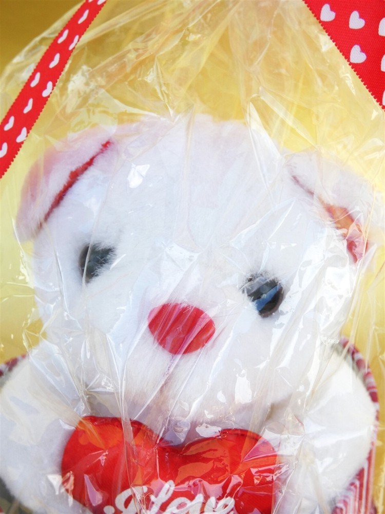Valentine Plush Bear In Keepsake Box Cute Red and White Valentines Teddy Bear Holding a Red Satin I love you Heart He is in a red and white Fabric Valentines keepsake or Jewelry Box Embellished with Red Glitter ribbon on the Lid Lid is Padded (Lid is on the bottom of the box and comes off to fit on the top of the box) Bear Measures: 8 inches Tall Makes a Great Valentines Gift for that Special person Please see Photos for more description COMES FROM A SMOKE FREE HOME Any questions please feel free to ask me Thanks for looking! other items Powered by SixBit's eCommerce Solution